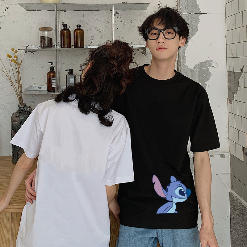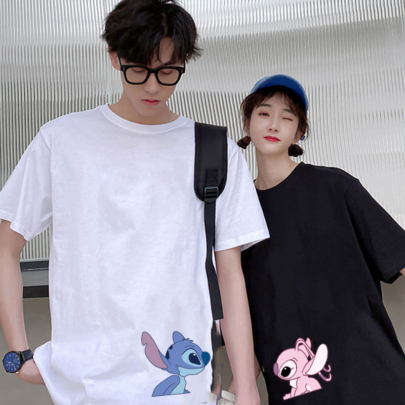 情侣装夏装2024年新款白色短袖t恤女初春小怪兽印花学生上衣衫潮