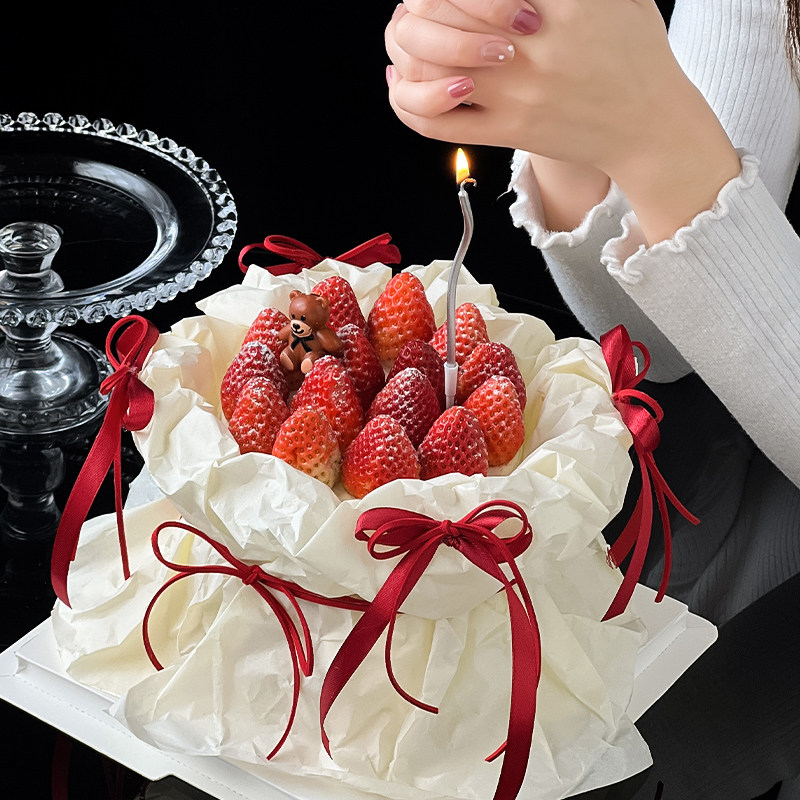 女神小仙女生日蛋糕装饰雪梨纸草莓花束蛋糕装饰小熊蜡烛插件