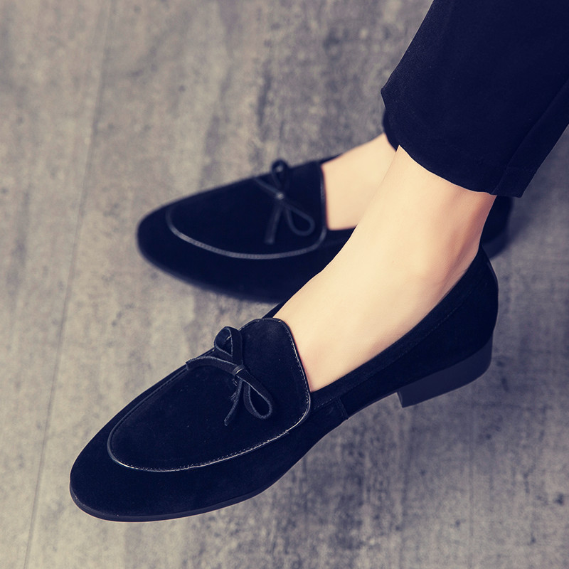 夜店发型师懒人一脚蹬休闲皮鞋男夏季英伦尖头增高磨砂皮豆豆鞋男