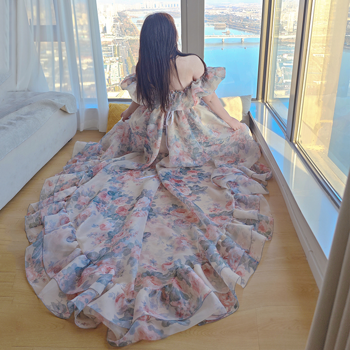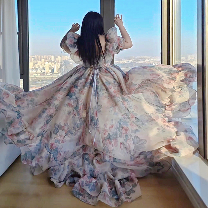 大码黄油玫瑰华丽大拖尾礼服成人礼写真旅拍230斤高端贵气连衣裙