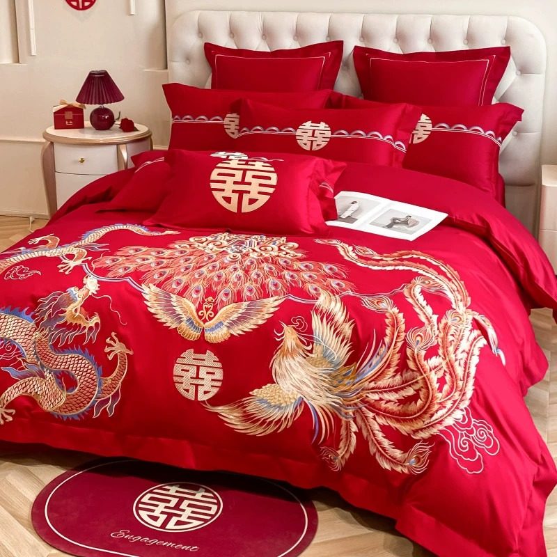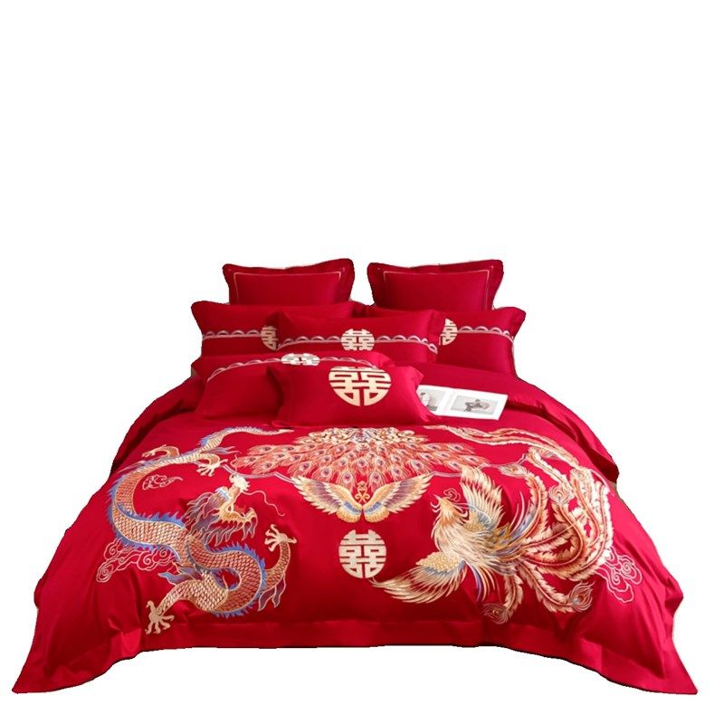 中式龙凤刺绣f婚庆四件套大红色床单被套结婚床上用品婚房陪嫁