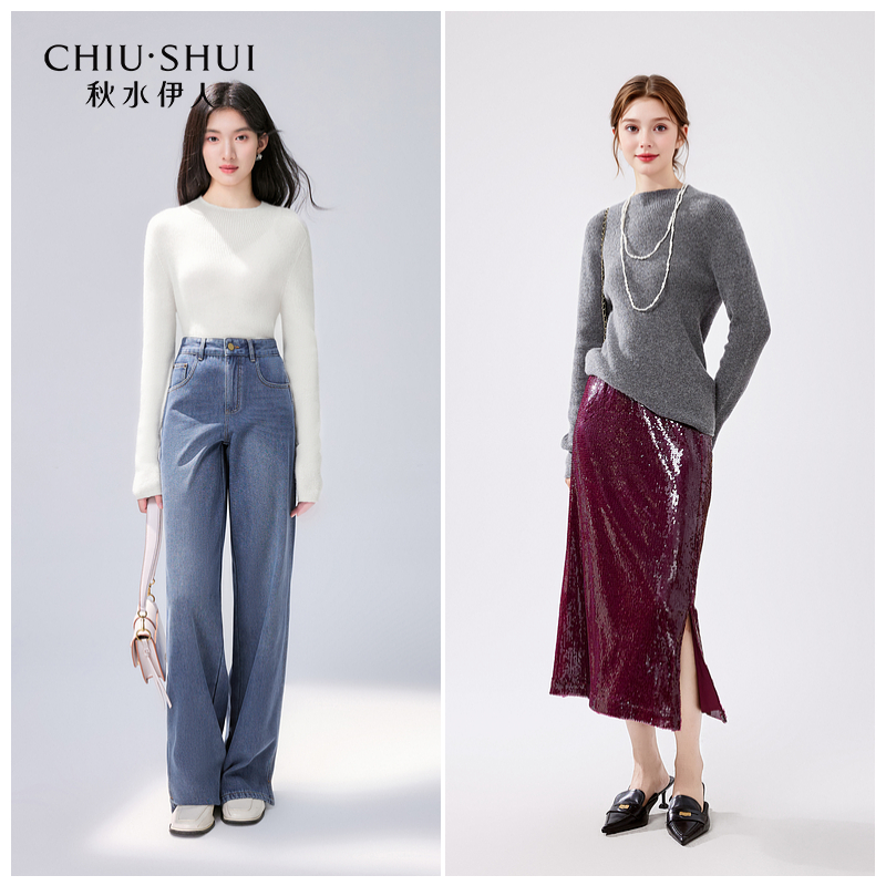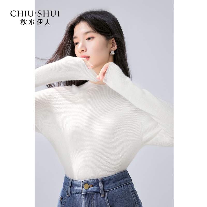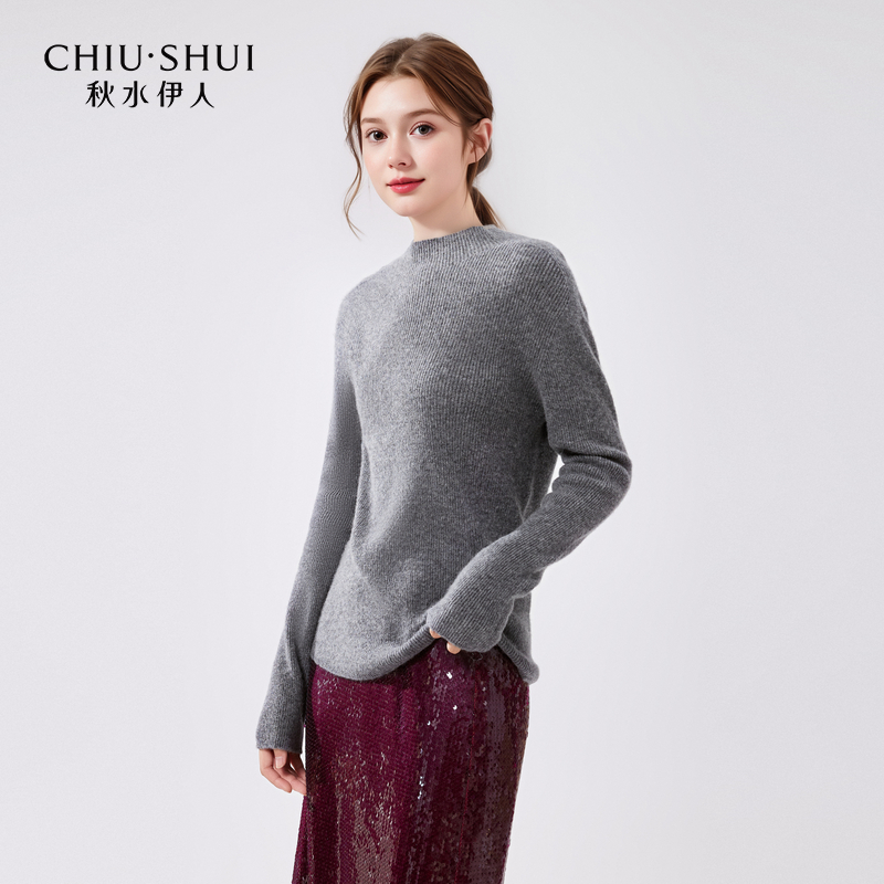 秋水伊人长袖半高领简约羊绒衫