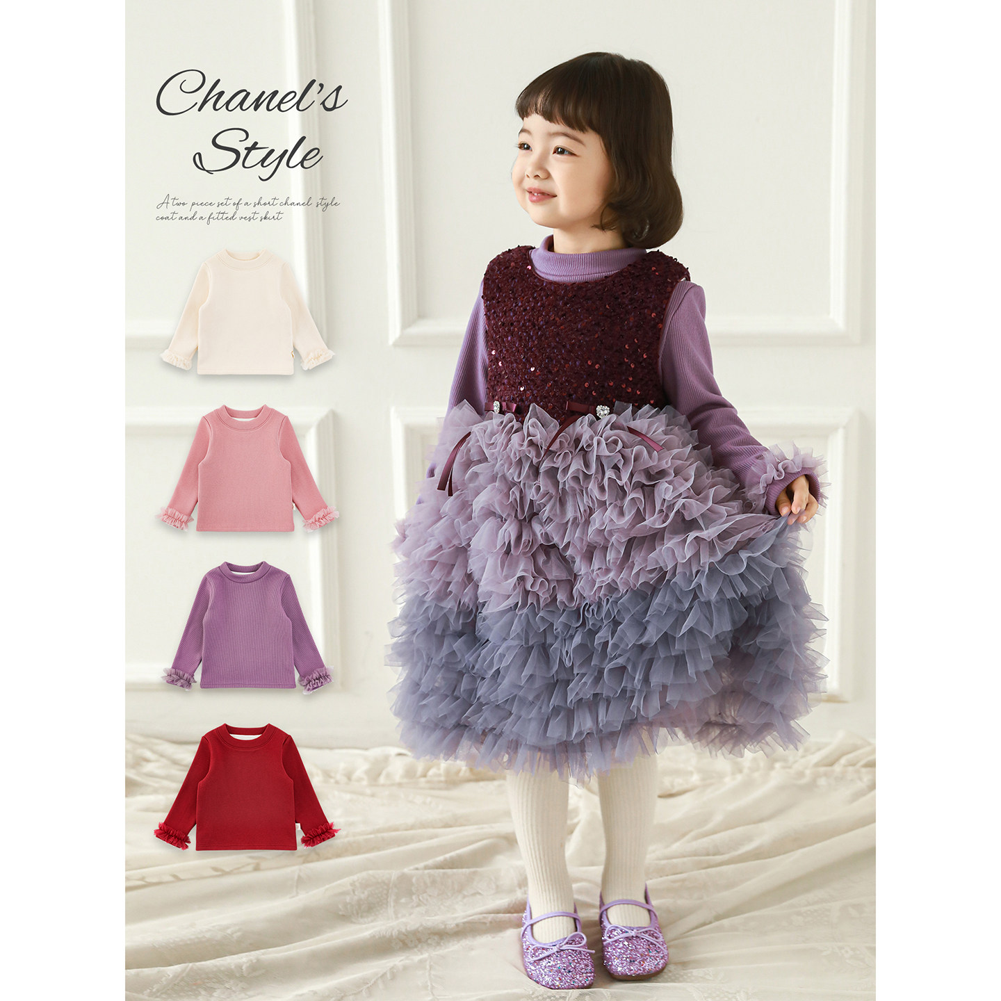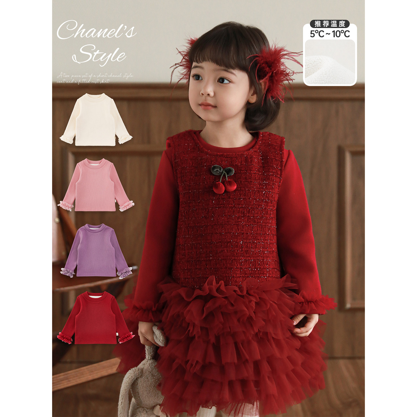 幼悠女童2025冬季新款加绒纯色打底衫加厚保暖儿童显瘦t恤过年服