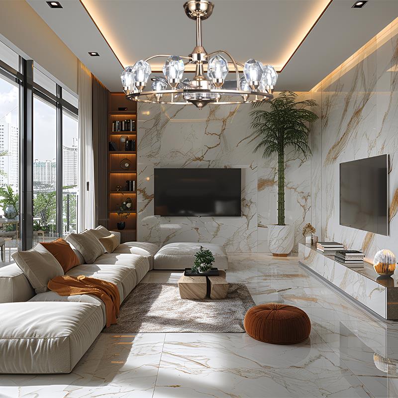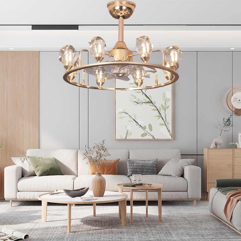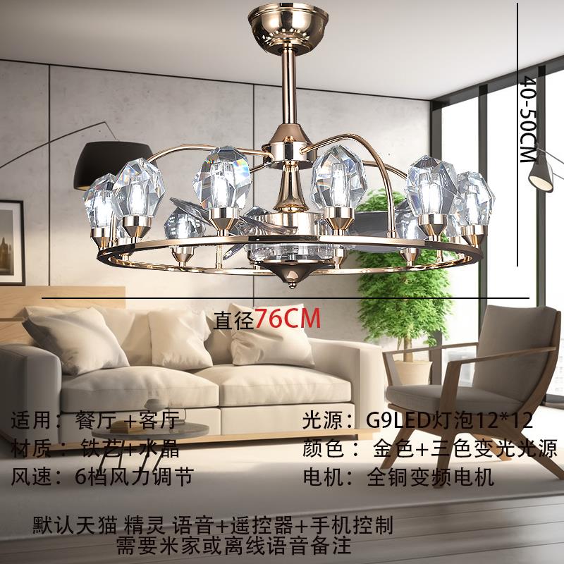 新款水晶风扇灯餐厅客厅吊扇灯卧室风扇吊灯照明一体灯全铜电机