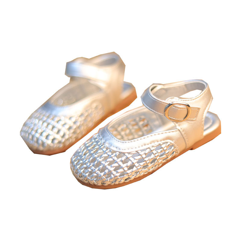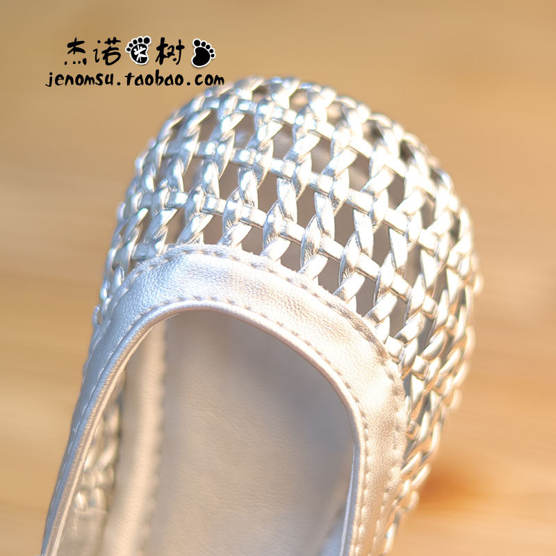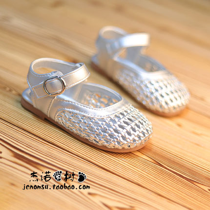 女宝皮鞋春夏2-3-5-6-9岁女童公主单鞋宝宝罗马鞋银色镂空半凉鞋