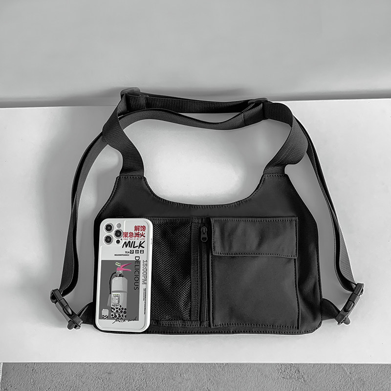 轻便薄款男士运动潮牌马甲包嘻哈街舞少年新说唱胸包女蹦迪个性包