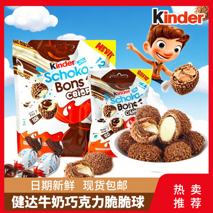 进口kinder健达脆皮球牛奶夹心巧克力脆脆球办公室零食品独立包装