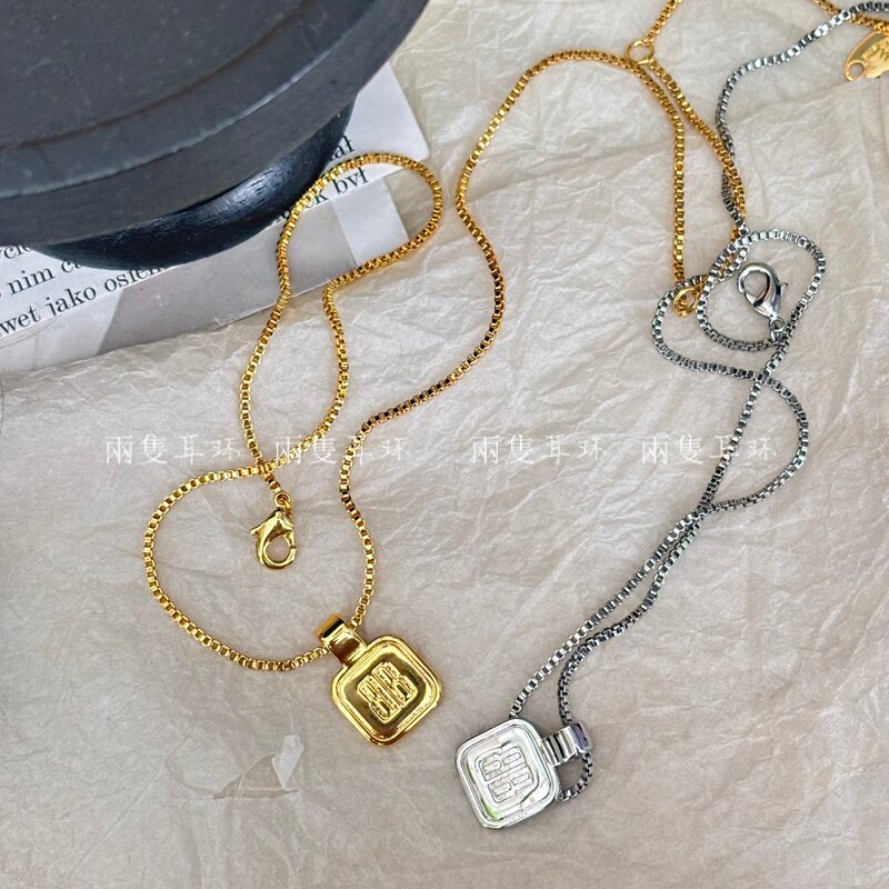 26年春夏新款金属风方牌双B字母几何方形锁骨链简约百搭日常项链