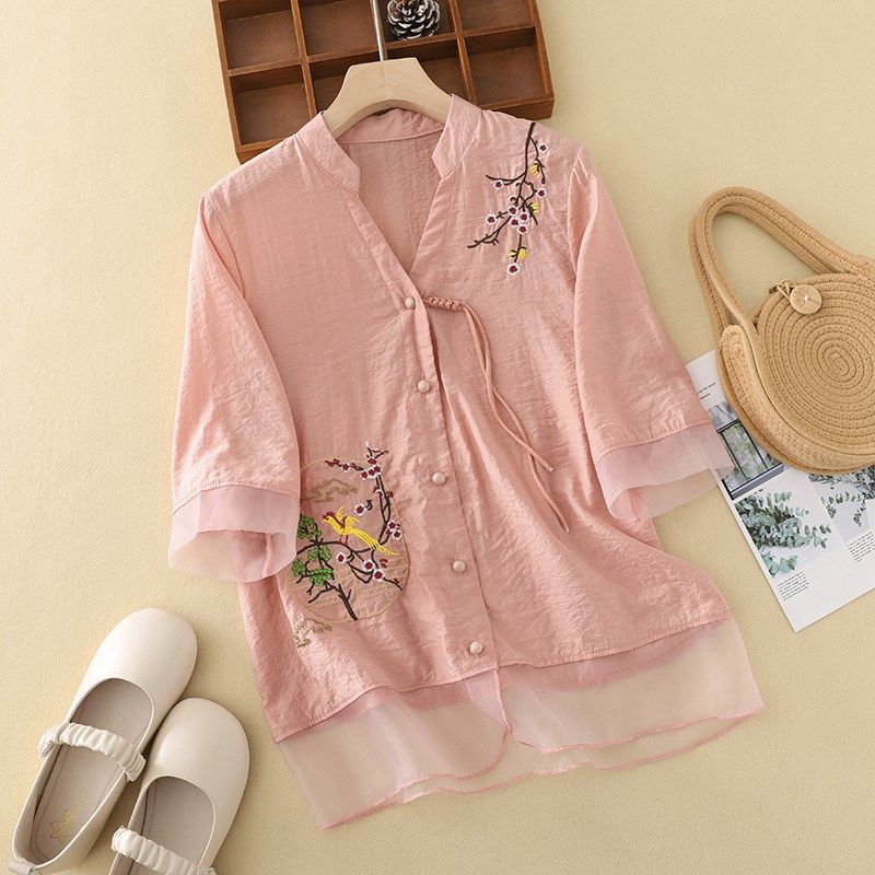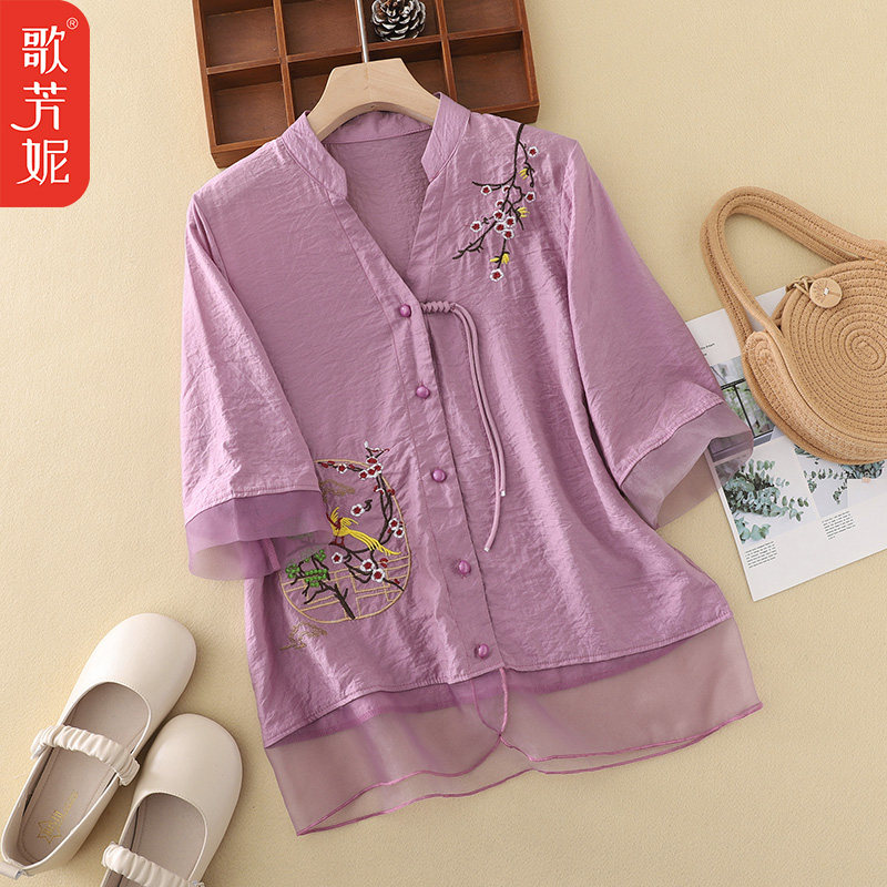 中老年女装短袖T恤上衣中年妈妈装2025夏装新款雪纺小衫国风套装