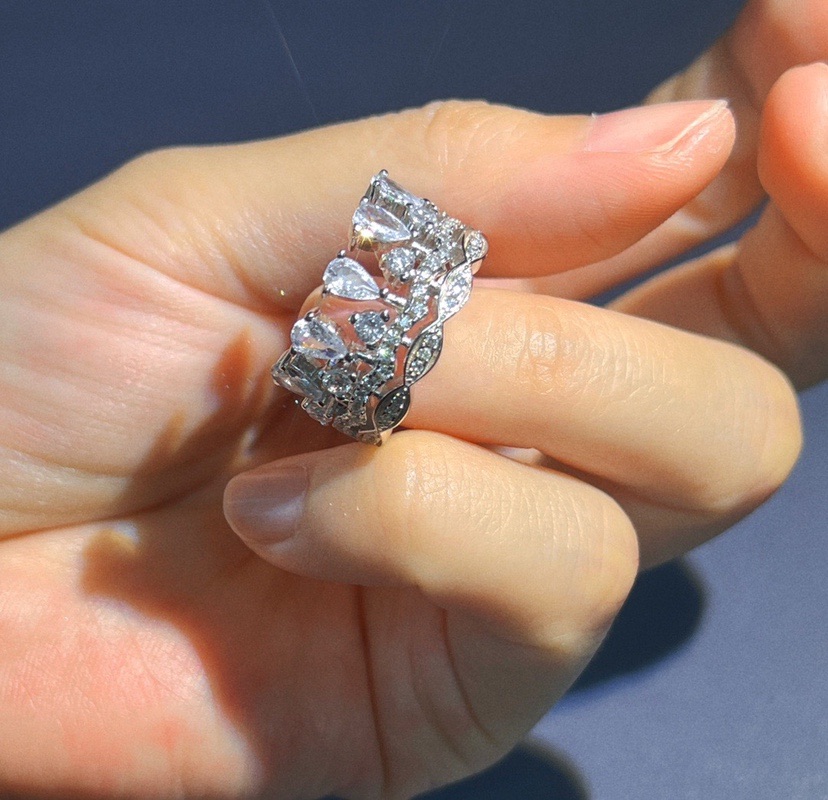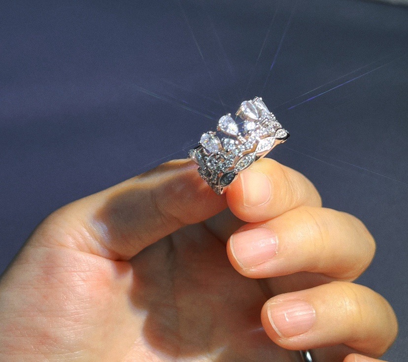 925银复古宫廷风蕾丝钻戒莫桑钻仿钻钻石戒指女新品