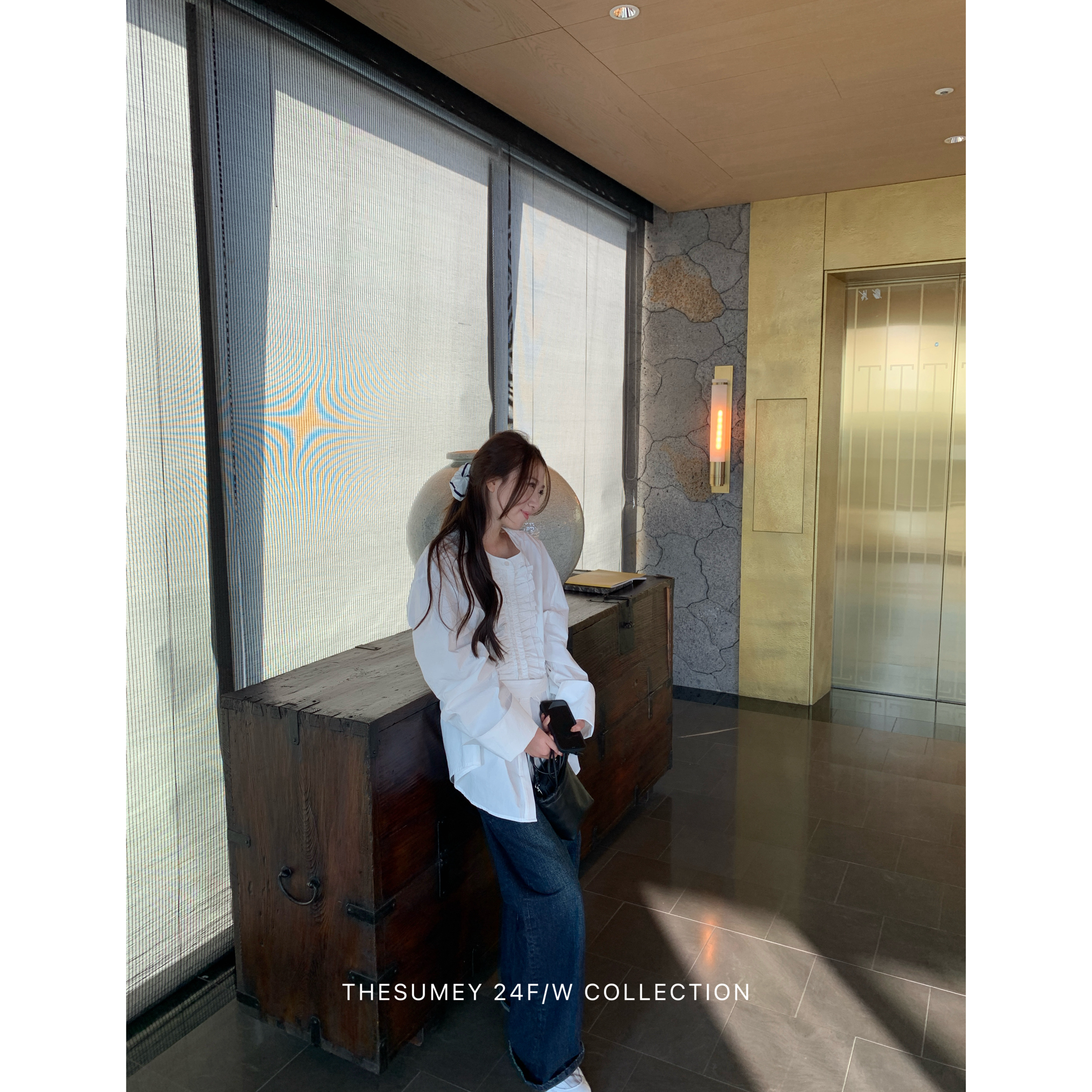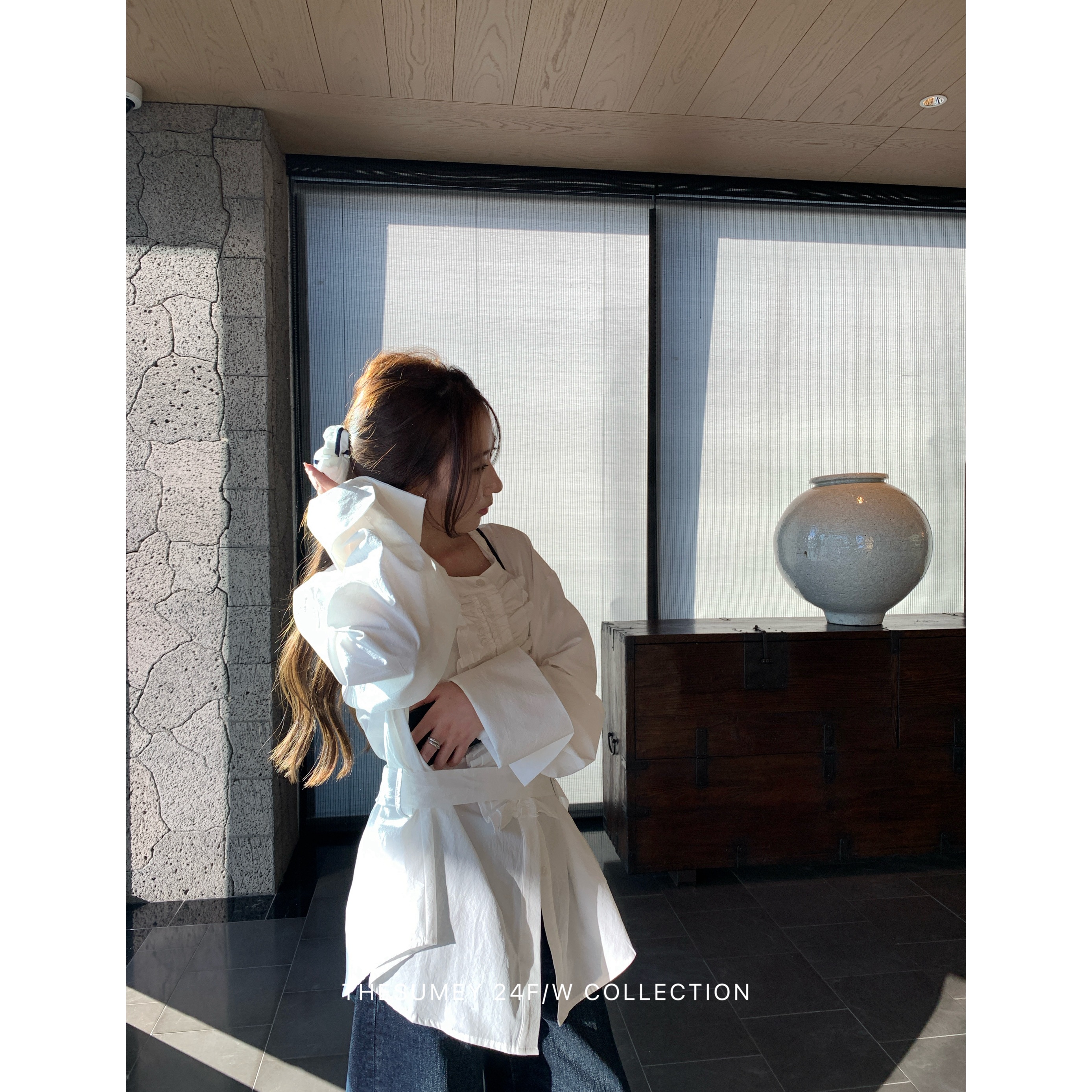 THESUMEY韩系系带上衣长袖女秋冬新款复古花边领圆领大翻袖白衬衫