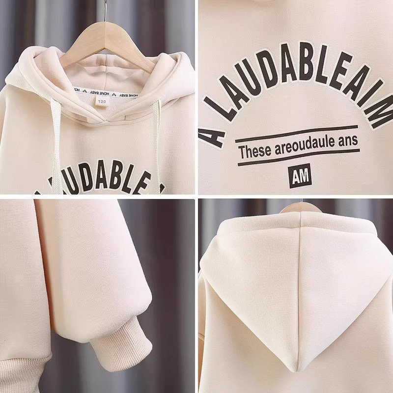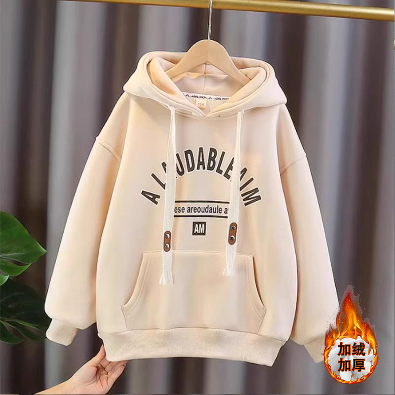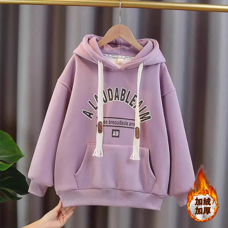 韩版女童加绒卫衣新款秋冬季连帽中大童印花加厚保暖上衣宝宝童装