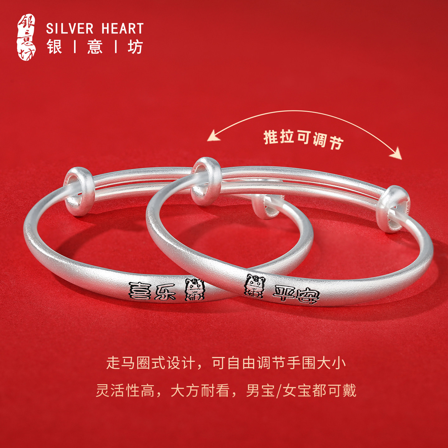 银意坊9999足银马宝宝手镯