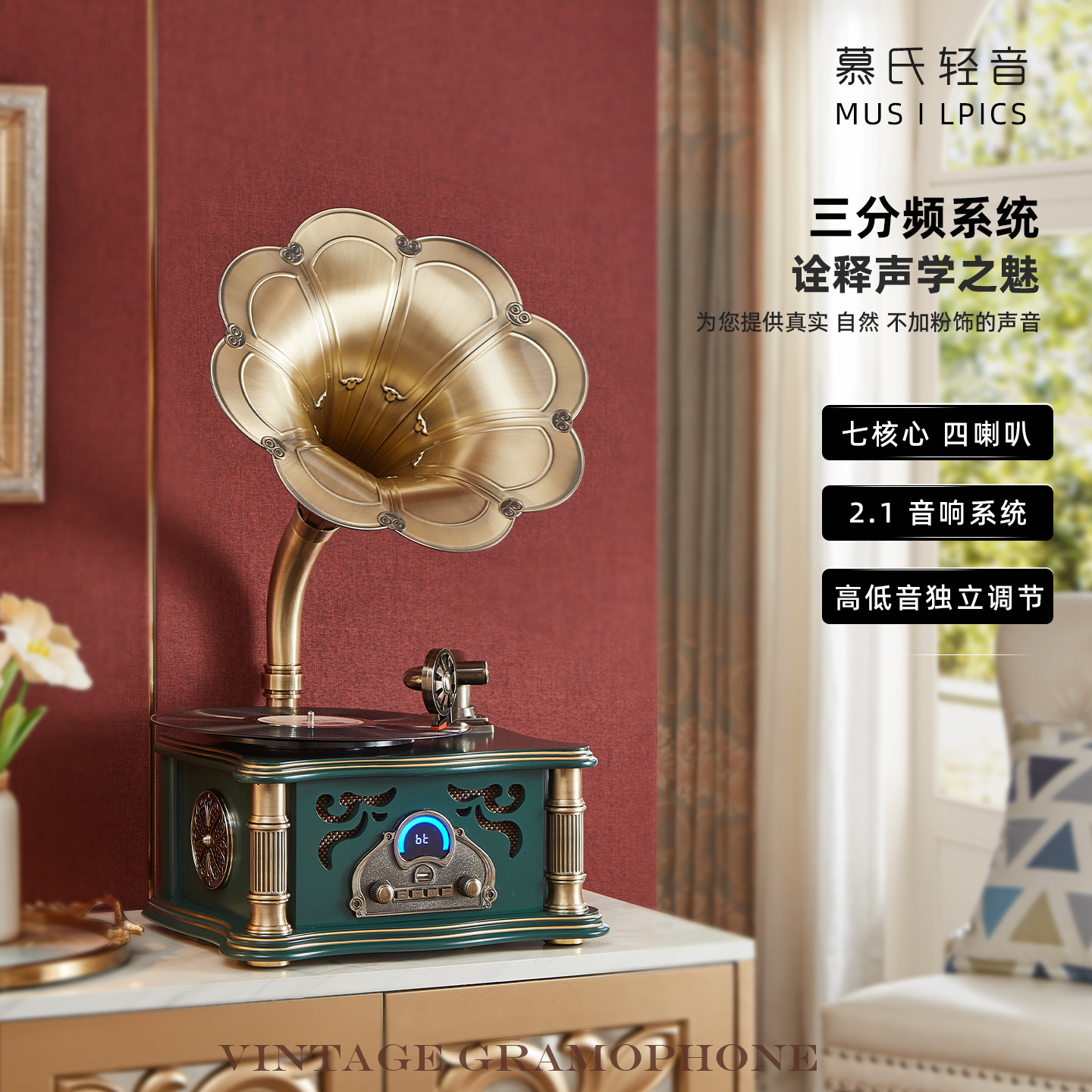 复古留声机黑胶蓝牙音响老式唱机
