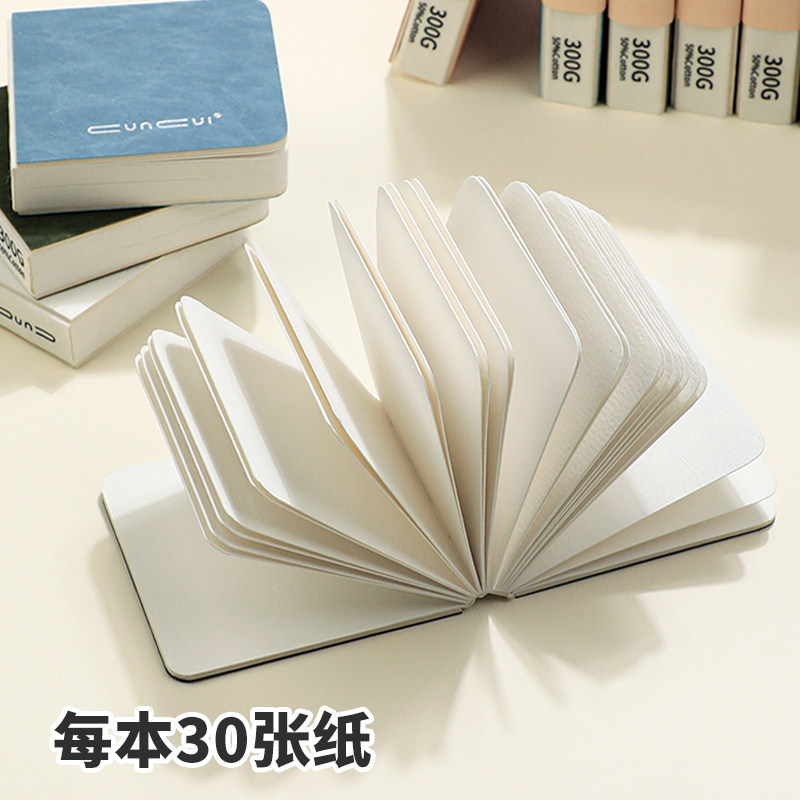 悦声300g中纹水彩本半棉方形画画摸鱼本丙烯马克笔随身便携豆豆本空白素描绘画本速写印章小方本手账本30张