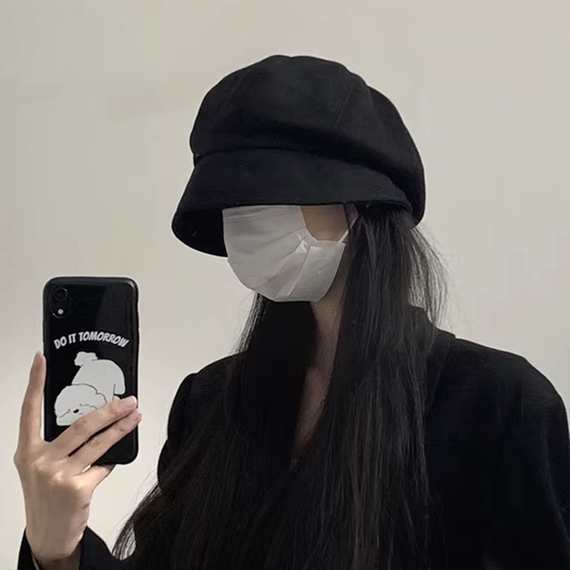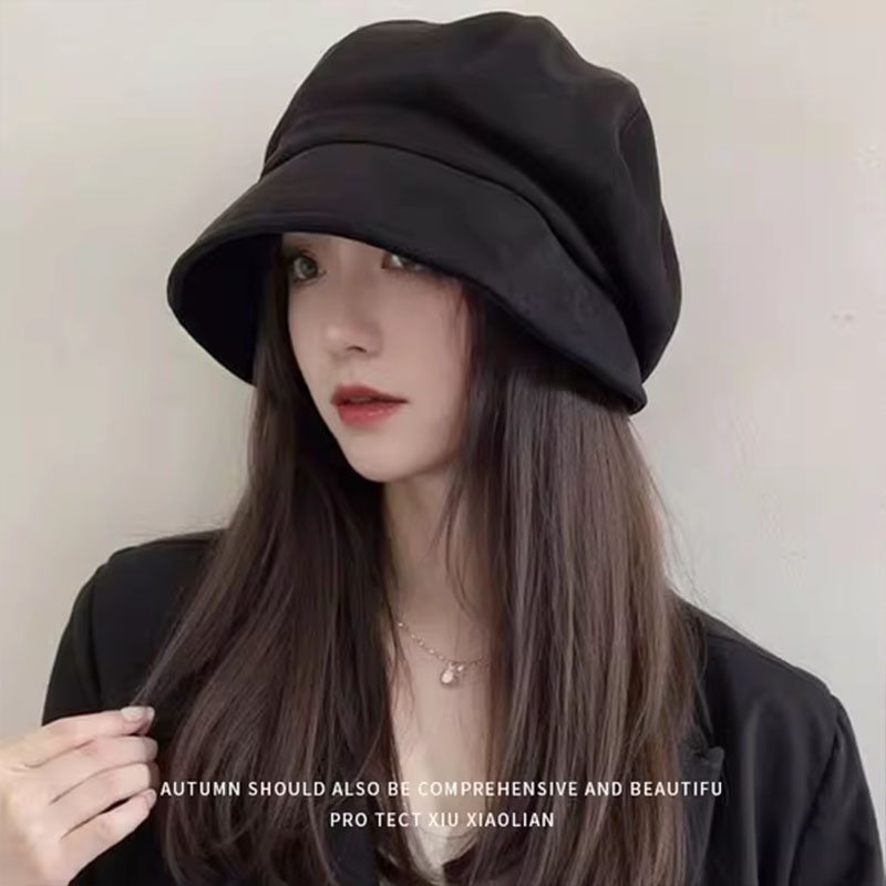 黑色贝雷帽2025新款春秋冬季保暖大头围堆堆冷帽显脸小渔夫帽子女