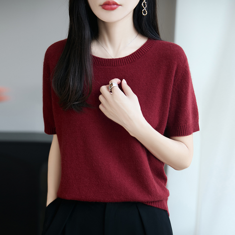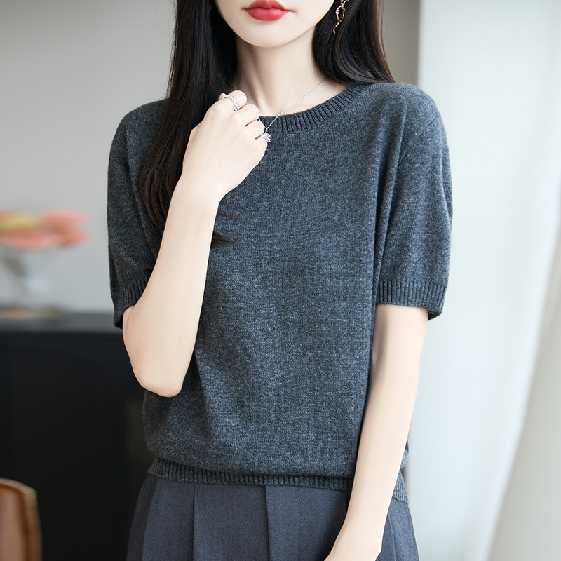 百搭纯色短袖t恤女夏季2025新款打底衫洋气大码女装冰丝针织上衣