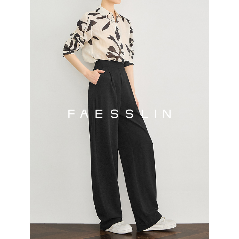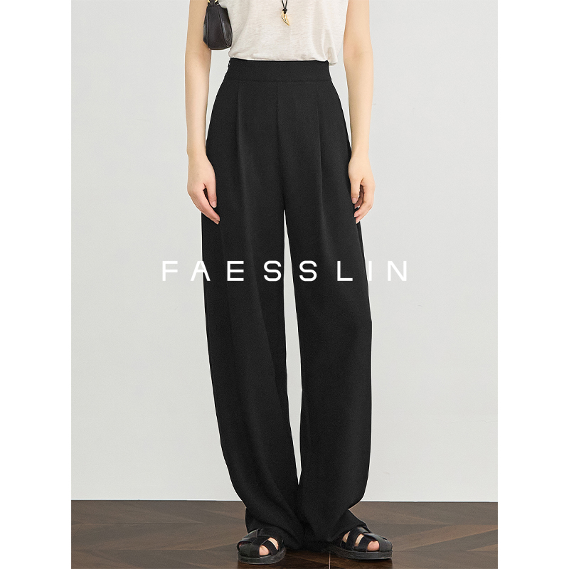 FAESSLIN加长版高腰小黑裤女2025春夏新款西装裤宽松阔腿休闲裤