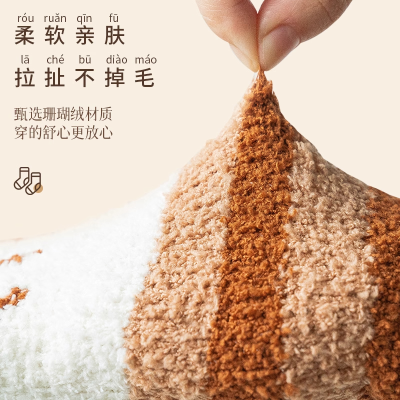 毛绒袜子女珊瑚绒秋冬加厚保暖长筒袜地板袜猫爪可爱居家睡眠女袜