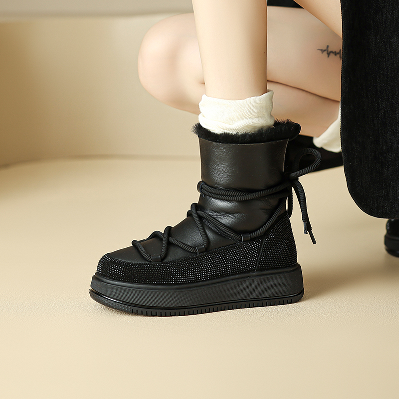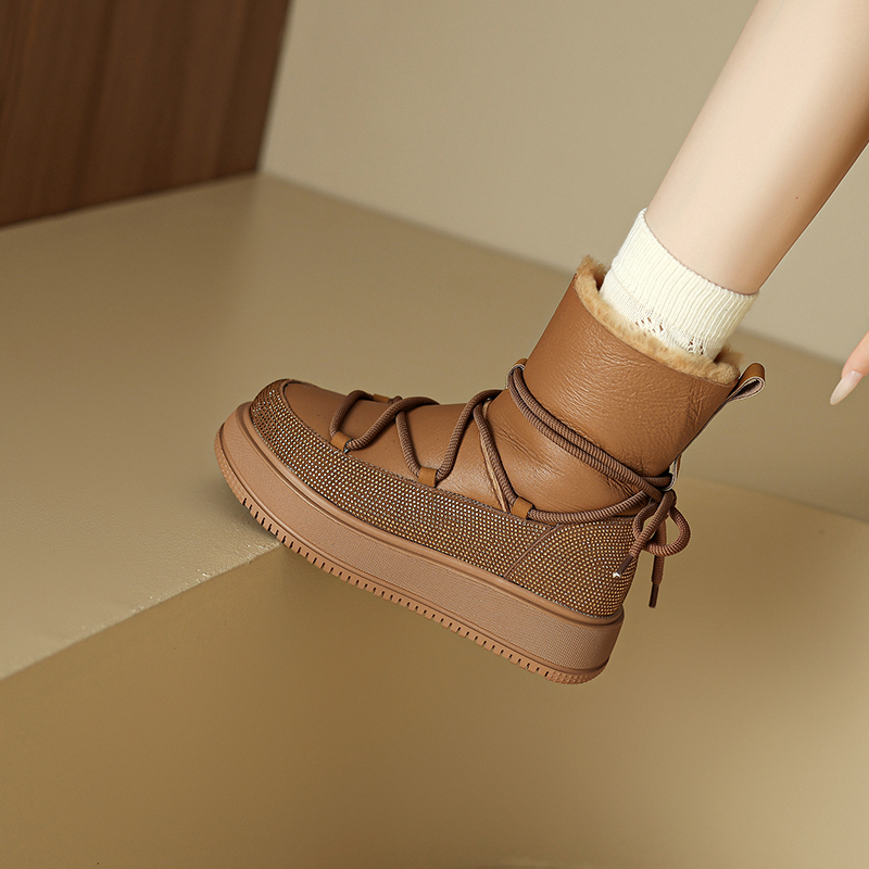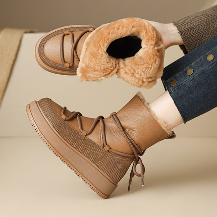 4.5cm厚底增高雪地靴女2025秋冬新款中筒棉鞋加绒加厚保暖短靴子