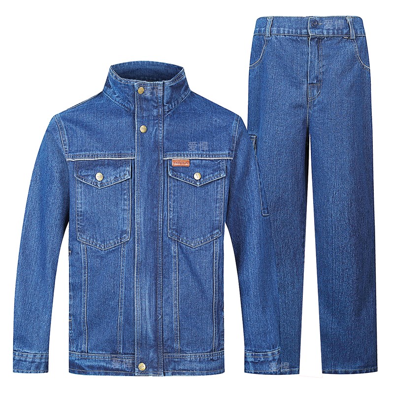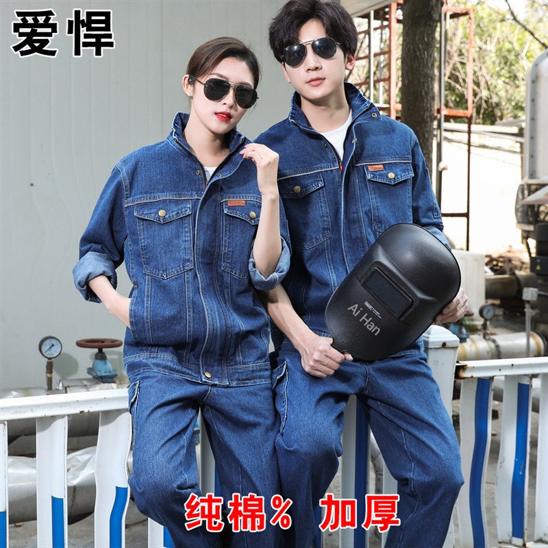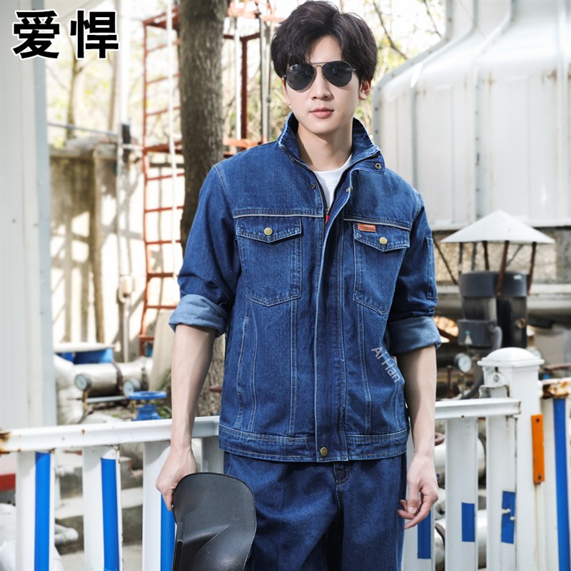 加厚牛仔工作服套装男工厂车间劳保服装防烫耐磨电焊工人工装