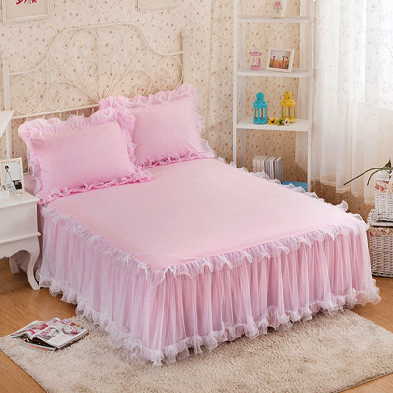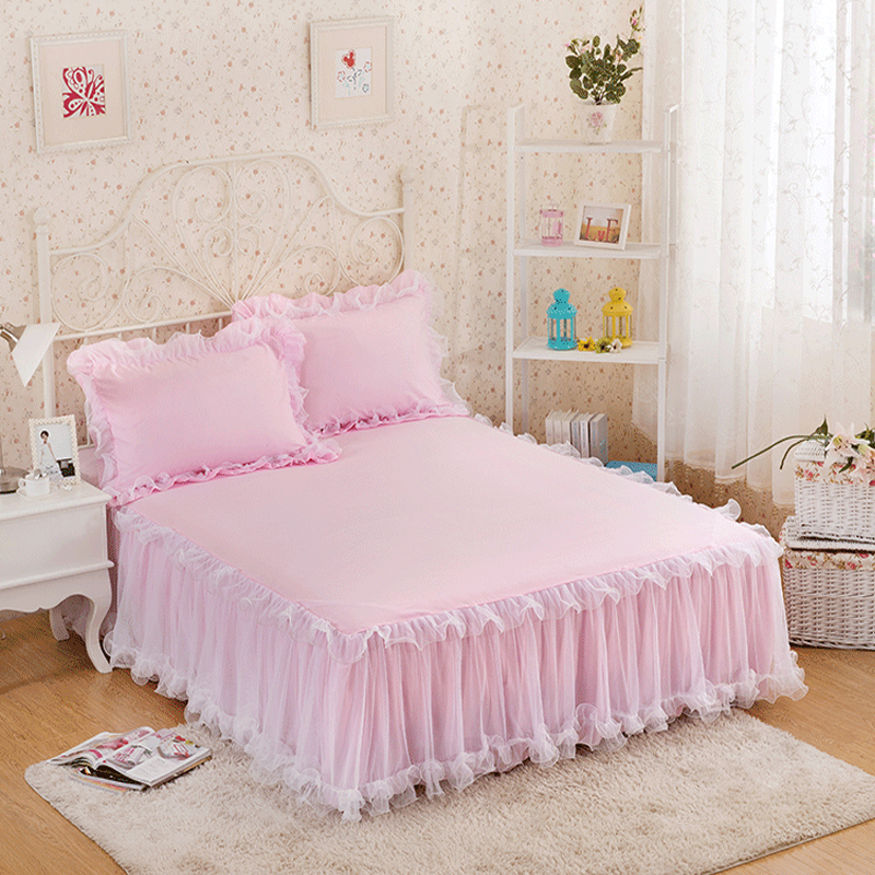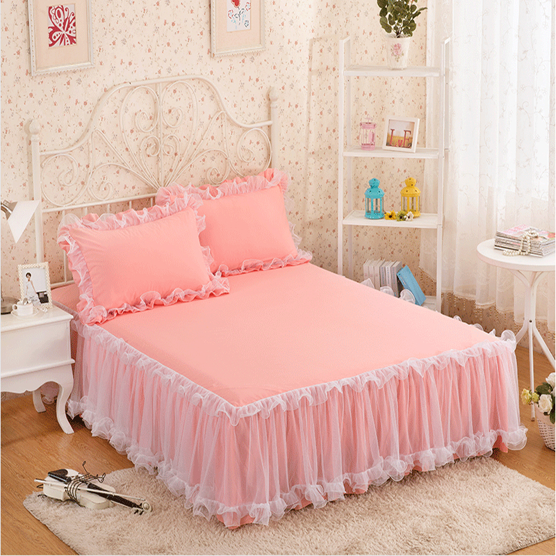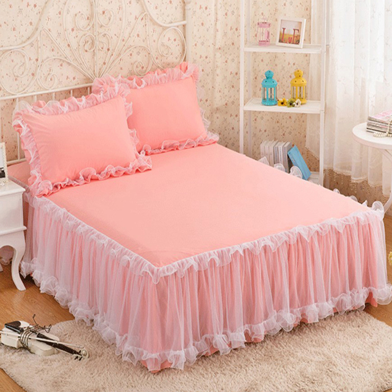 蕾丝花边床裙三件套公主风床罩