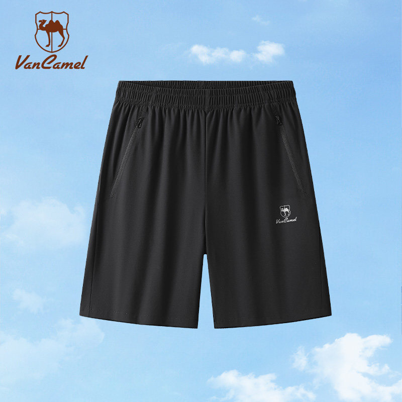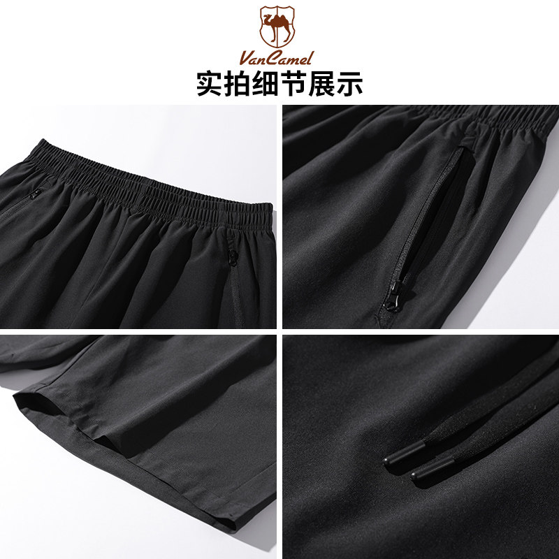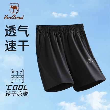 西域骆驼冰丝短裤男夏季薄款速干中裤户外运动弹力透气五分裤子男