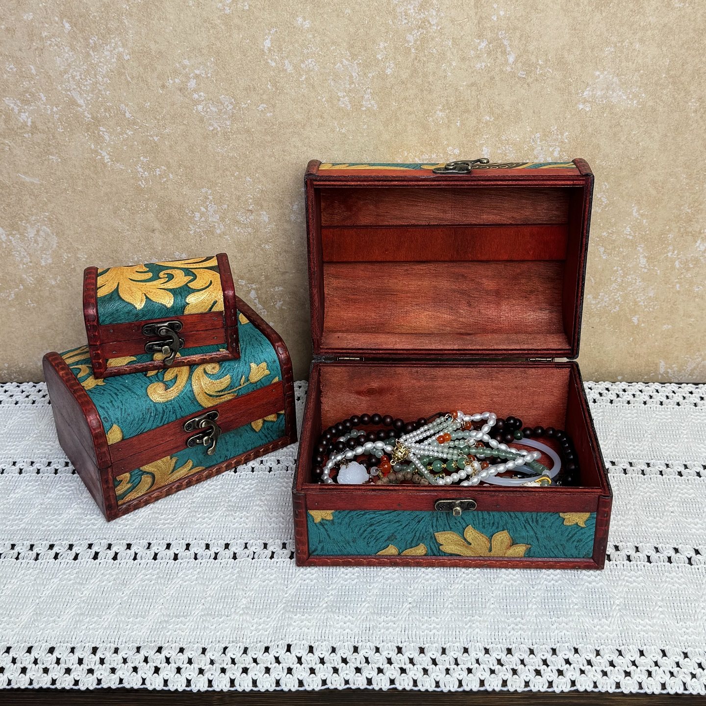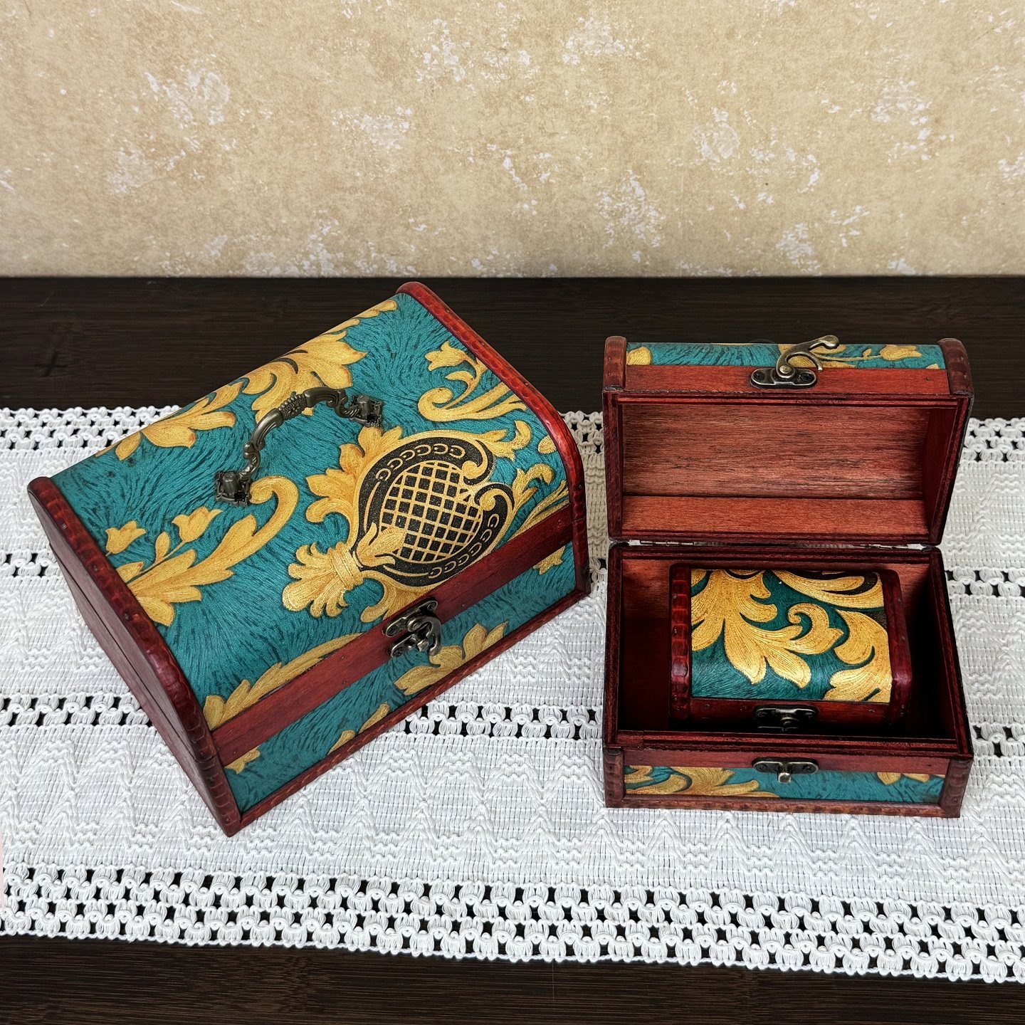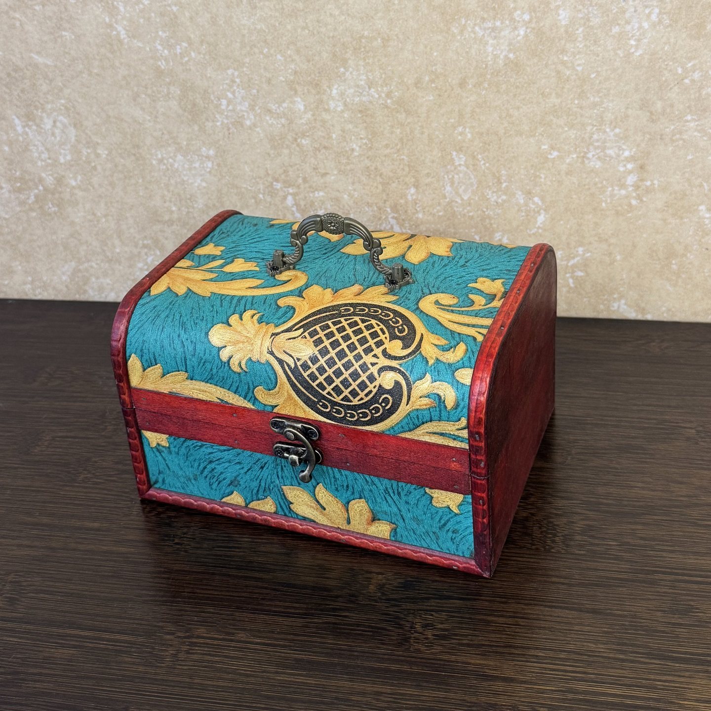 复古盒子首饰盒带锁防盗小宝箱家用桌面收纳老式储物木盒子招财