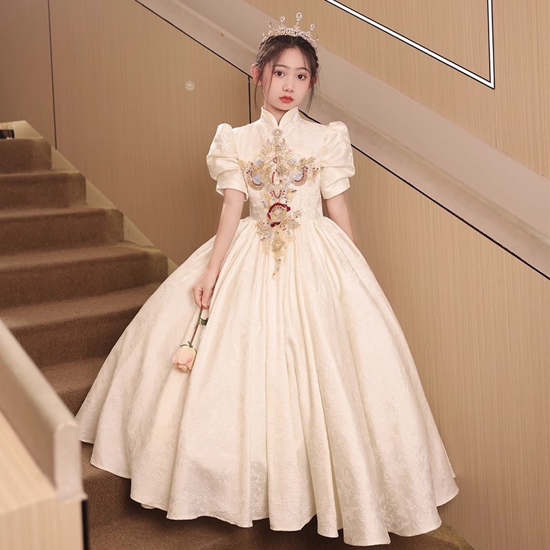 中国风气质高端公主裙小女孩花童超仙甜美蓬蓬裙大童生日秋冬礼服