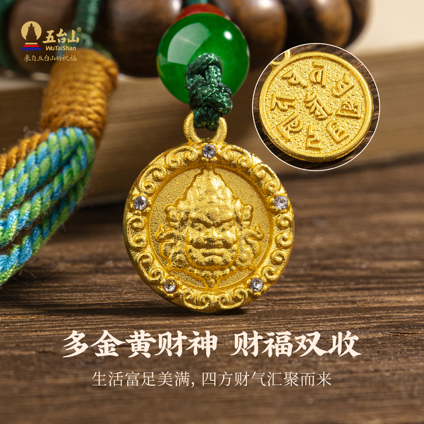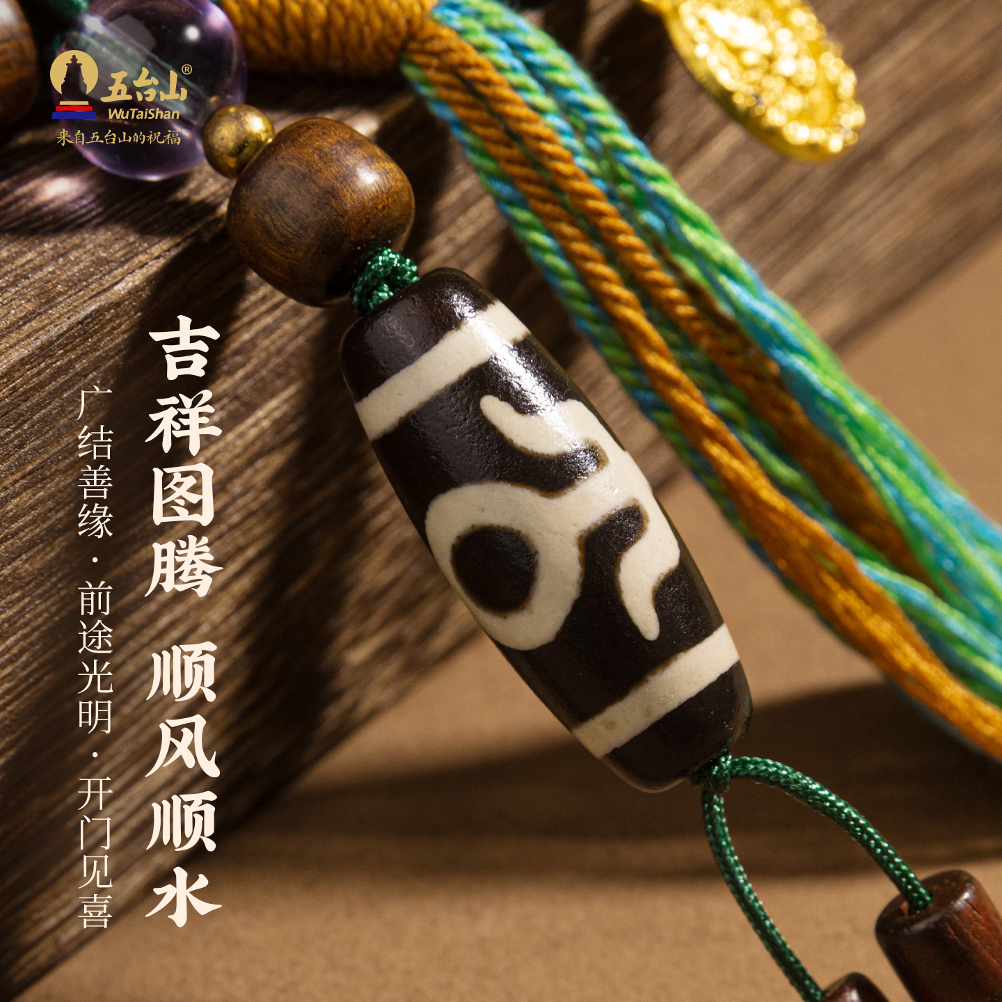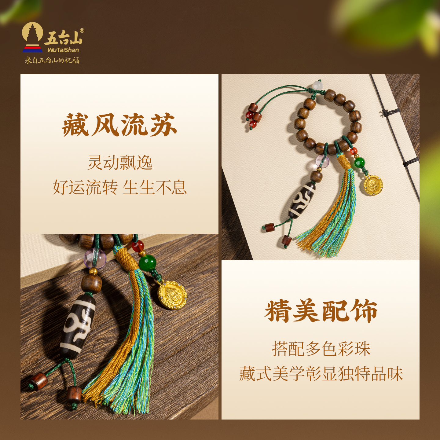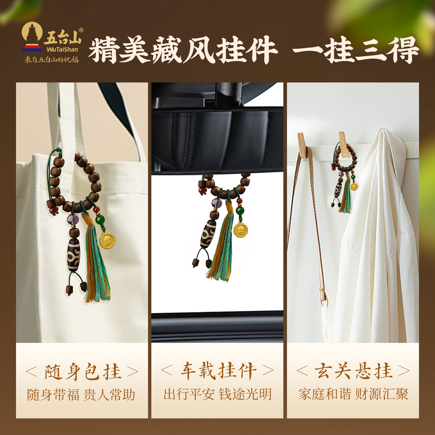 五台山黄财神天珠挂件天然鸡翅木转运珠包挂饰汽车钥匙扣流苏饰品