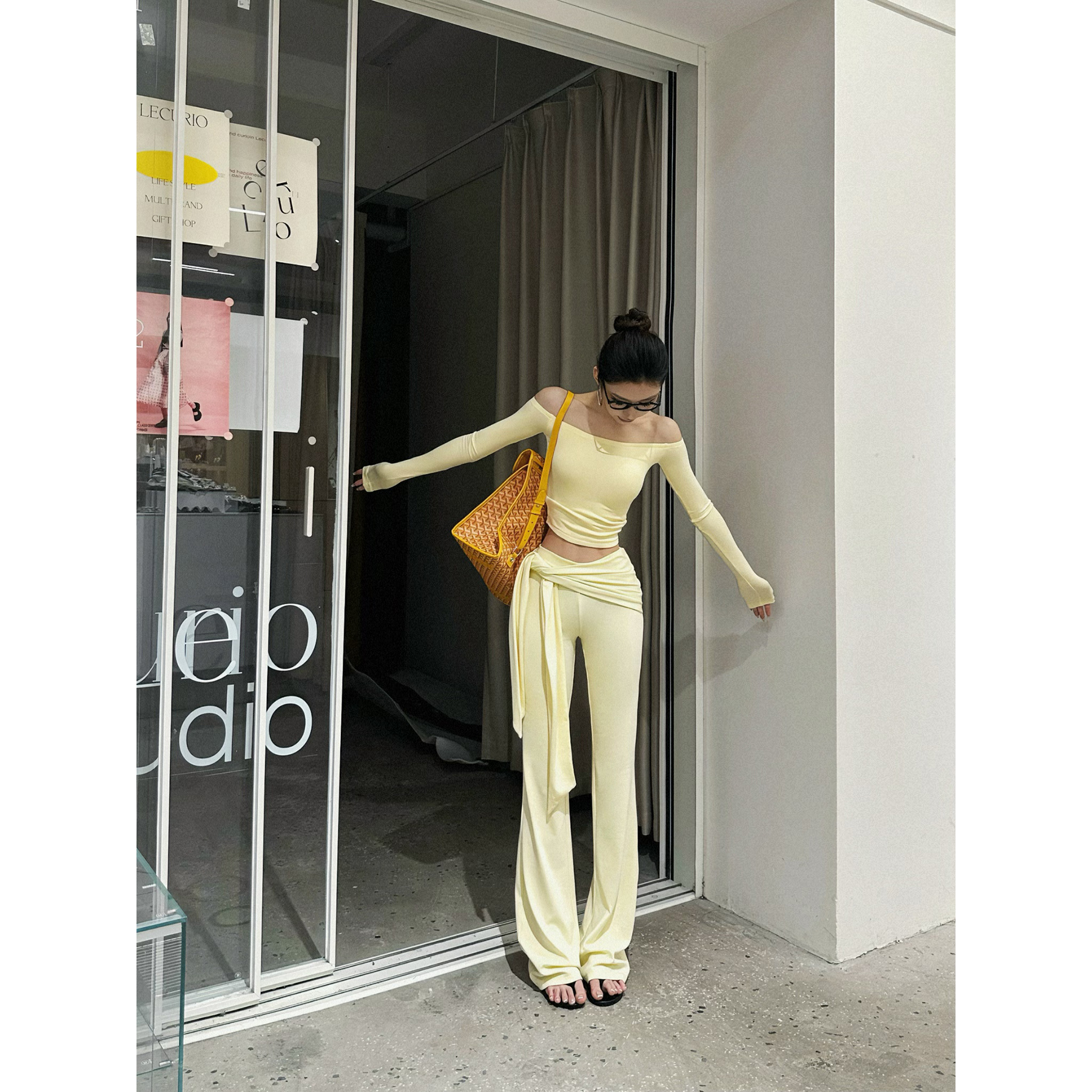 福尔尼斯悦 辣妹套装女2025秋冬新款一字肩长袖上衣裤子两件套