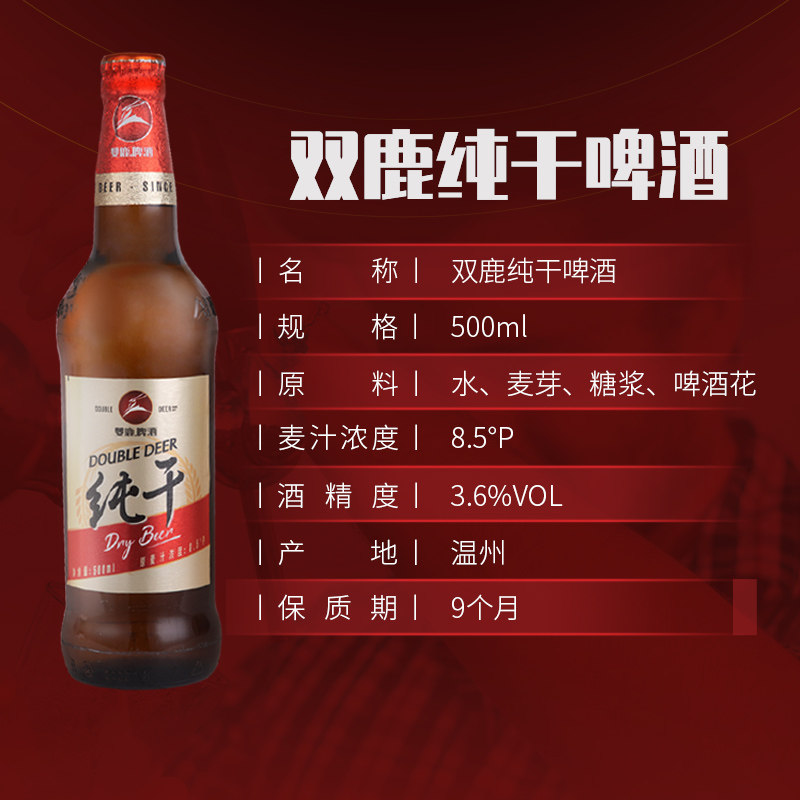 温州特产双鹿纯干啤酒616ml瓶装温州经典老口味啤酒白双鹿干特价