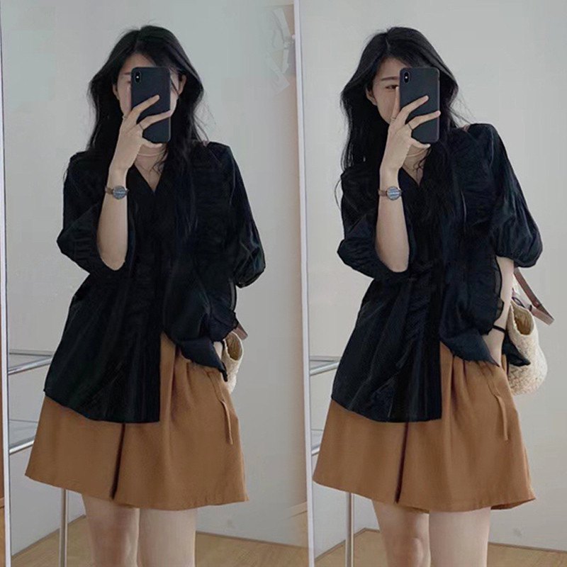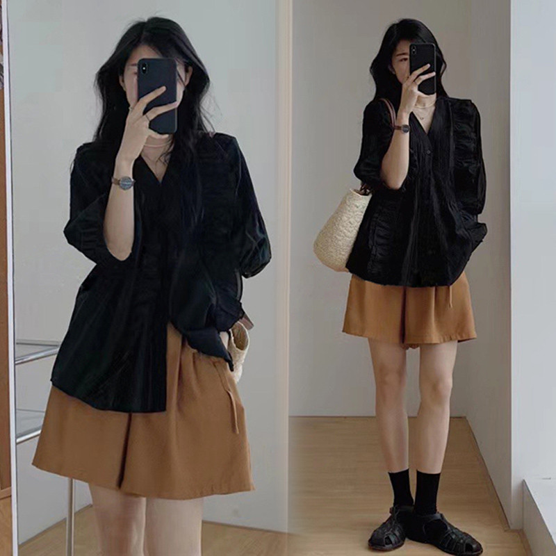 孕妇短裤外穿夏天薄款宽松小个子时尚阔腿五分裤上衣两件套装夏装