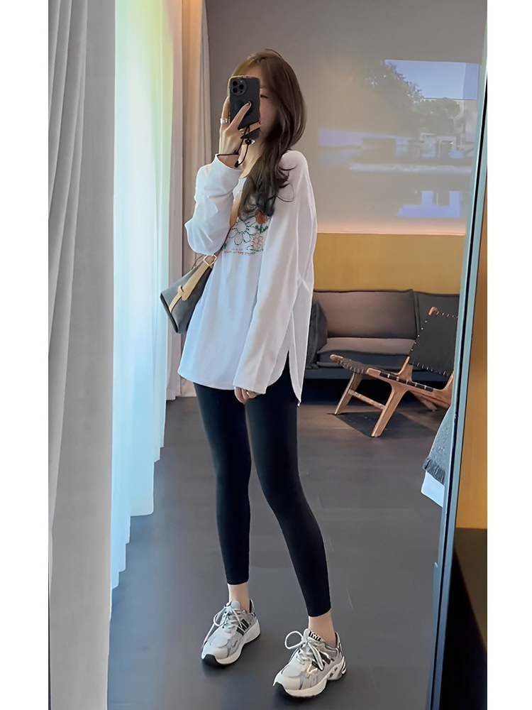 纯棉长袖t恤女秋冬加绒内搭打底衫女中长款遮屁股洋气不规则上衣