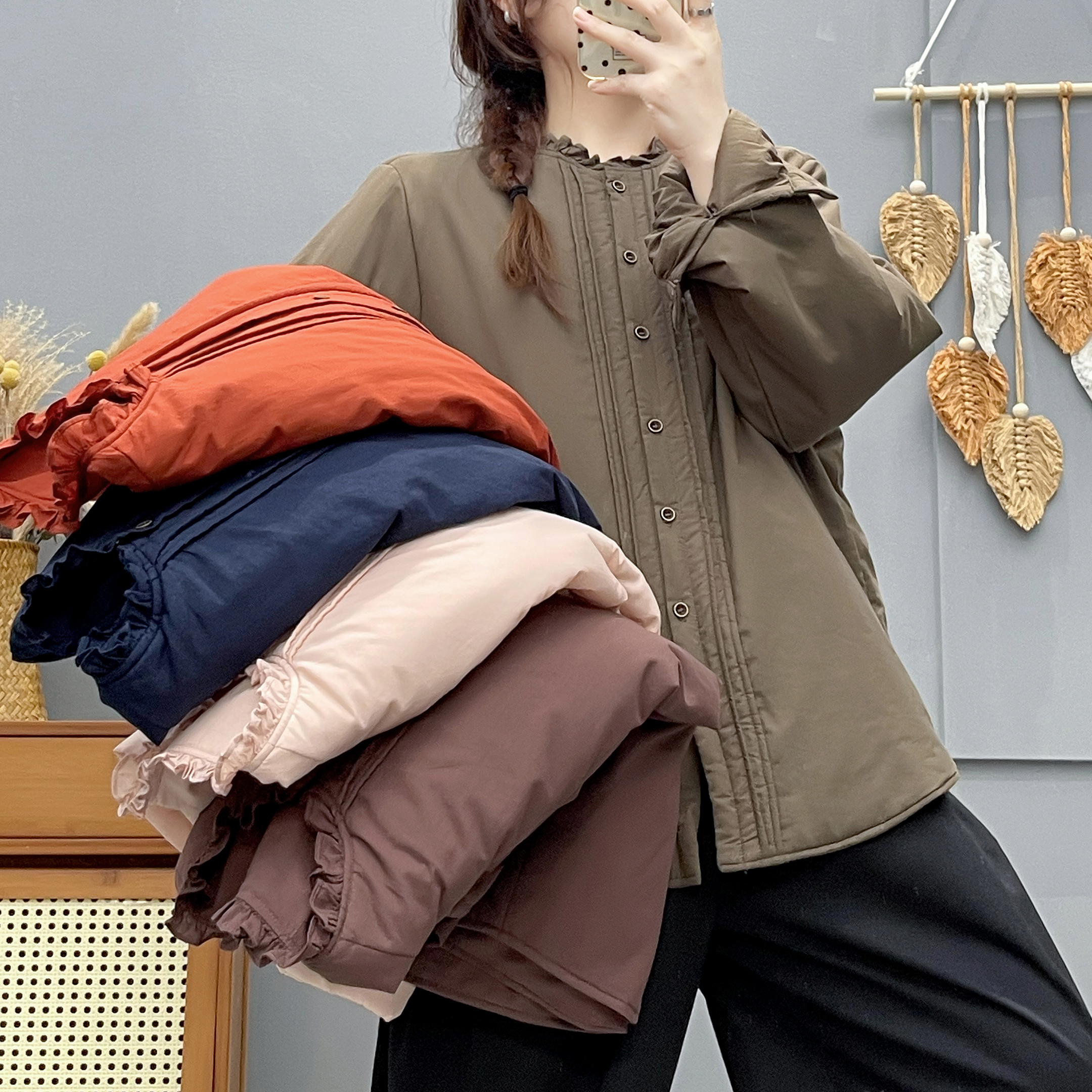 花边领棉服女长袖单排扣减龄宽松休闲风夹棉小外套学院风棉衣棉袄