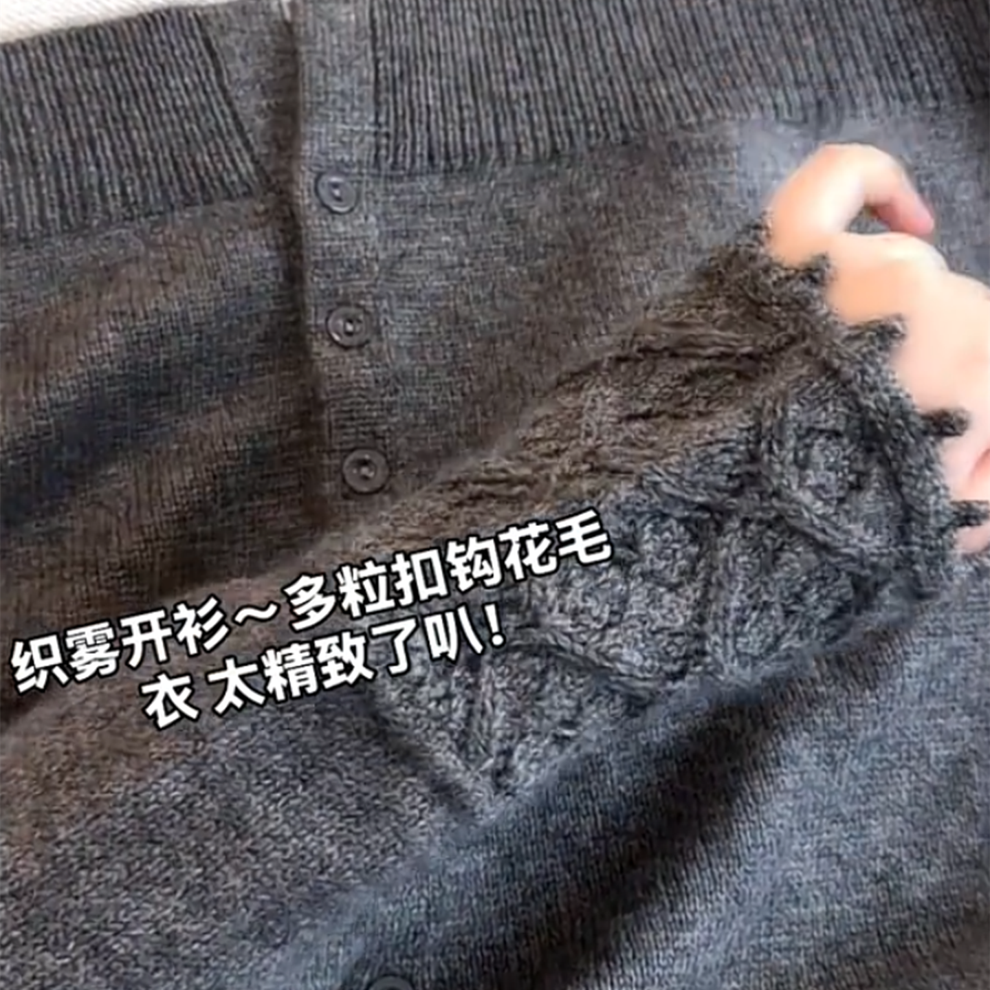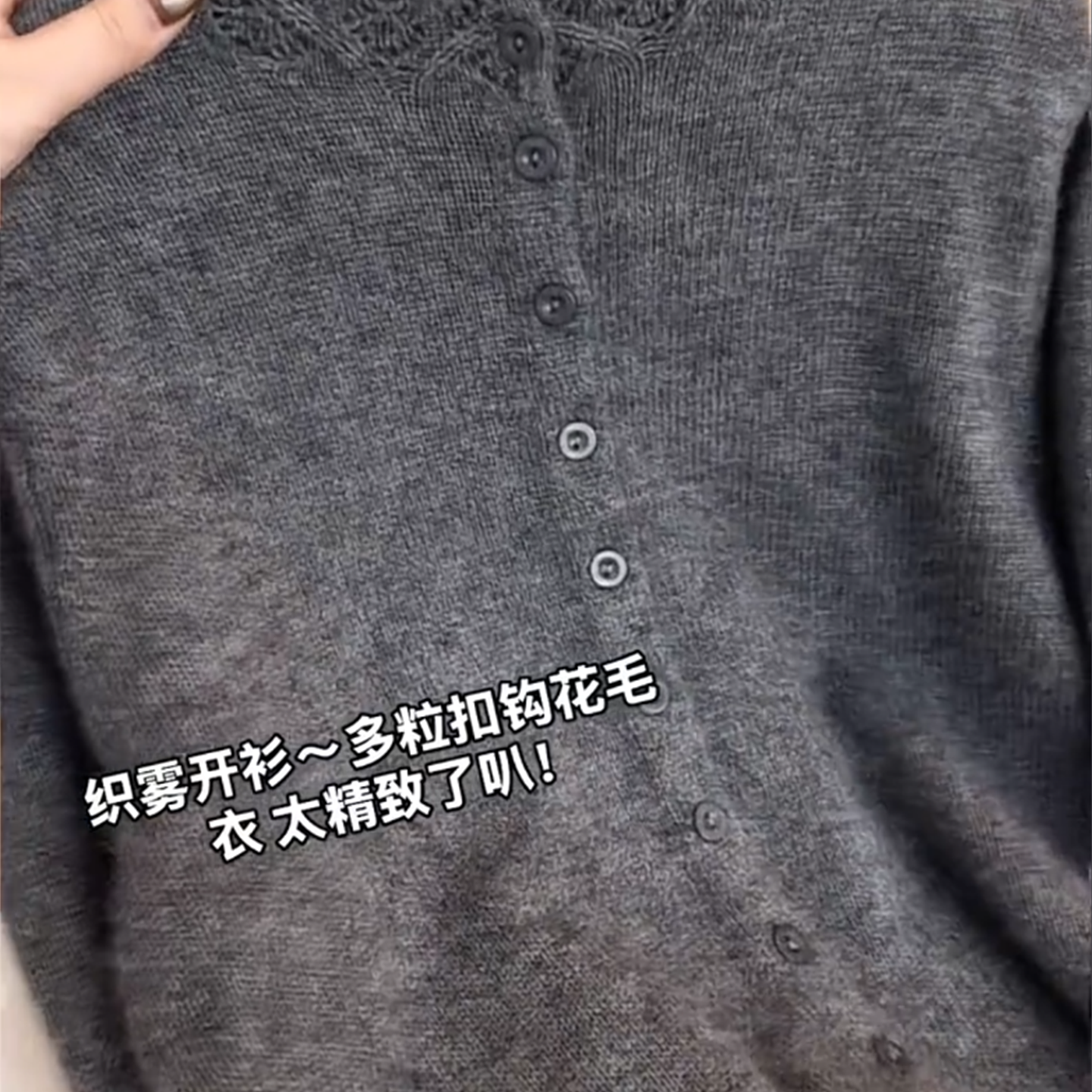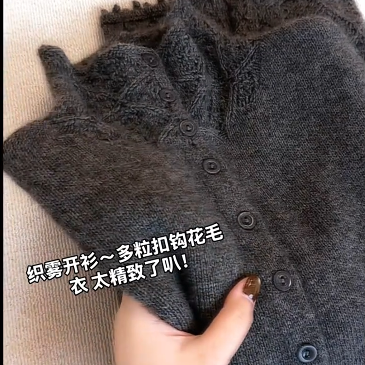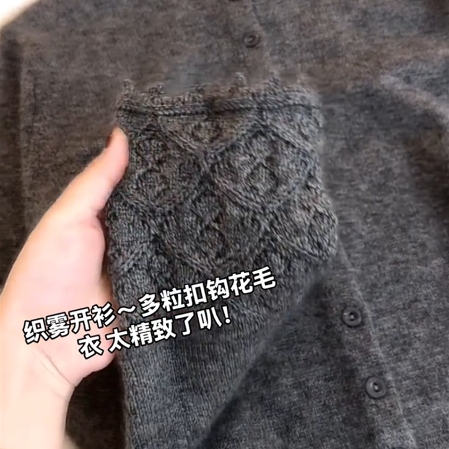 秋冬慵懒风高级感灰色高领镂空针织开衫女秋冬设计感显瘦百搭毛衣