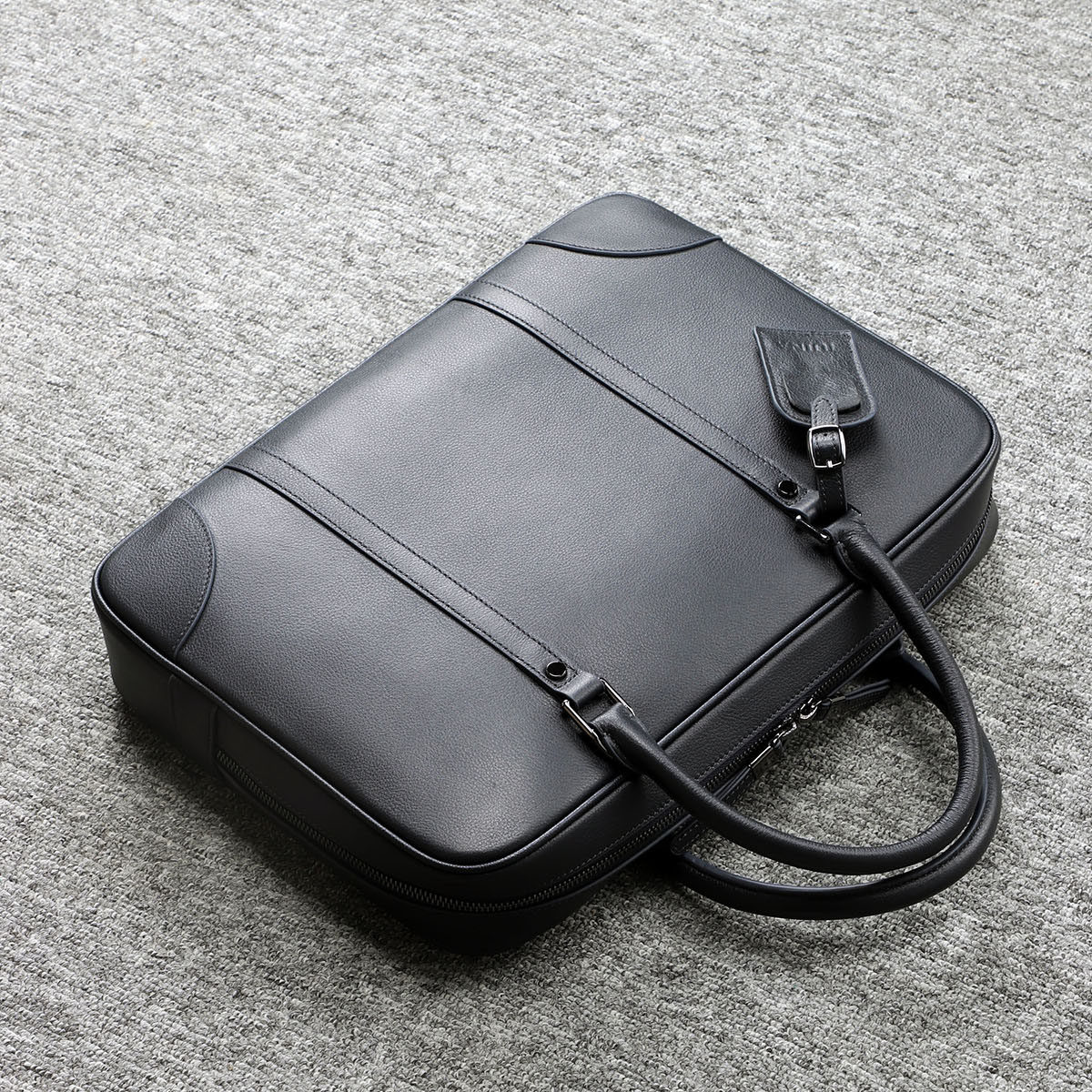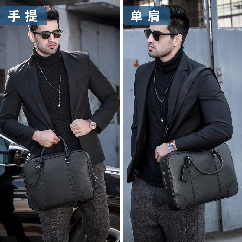 男士手提包横款公文包牛皮电脑包大容量斜挎包简约男包真皮商务包