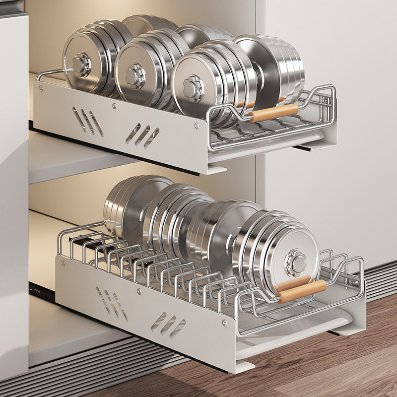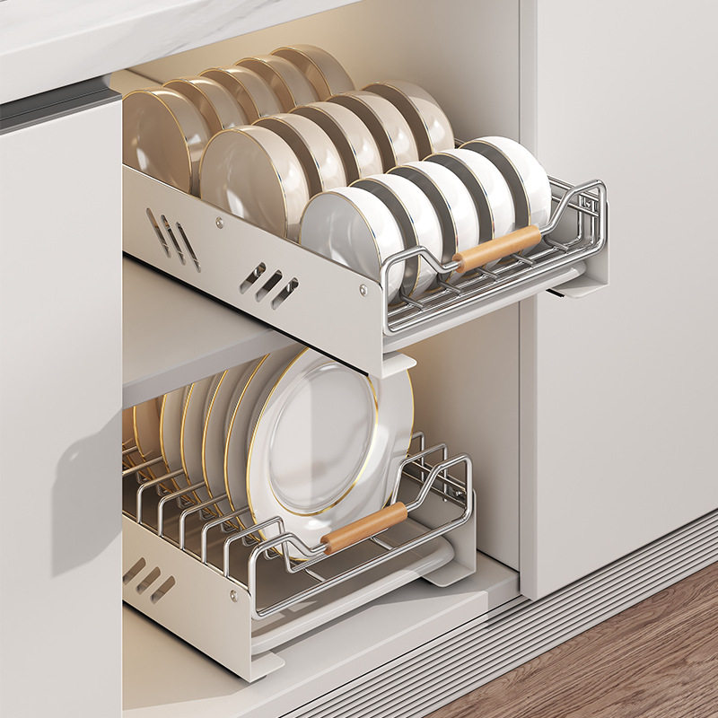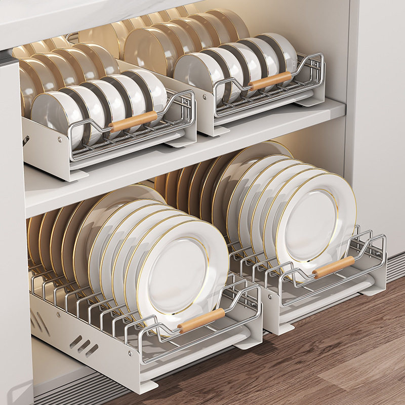 不锈钢碗碟收纳架厨房橱柜内置物架抽屉式拉篮抽拉碗柜盘沥水碗架