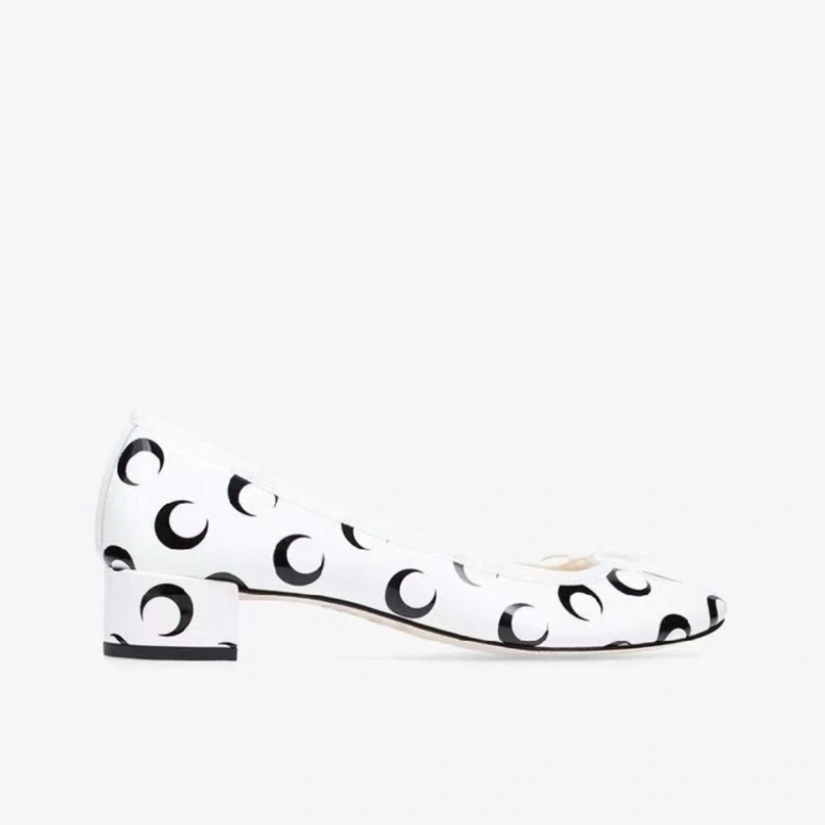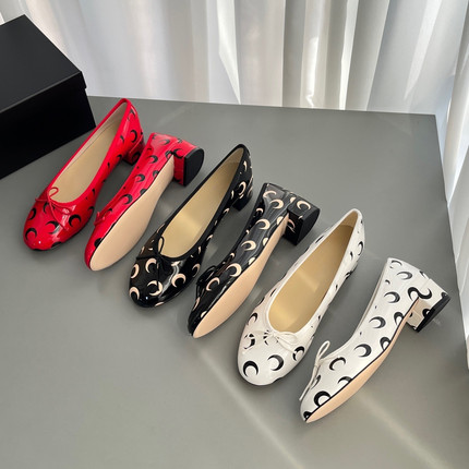 2025春夏新款月牙蝴蝶结中跟粗跟芭蕾舞鞋浅口时尚漆皮通勤单鞋