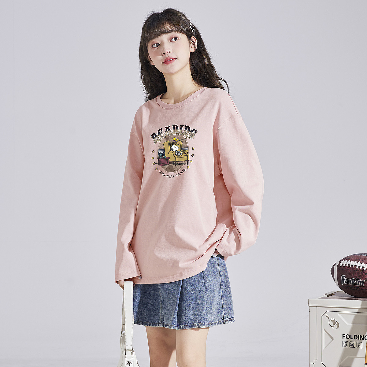 【史努比联名款】唐狮2025春季新款女T恤洋气显瘦时尚粉色圆领