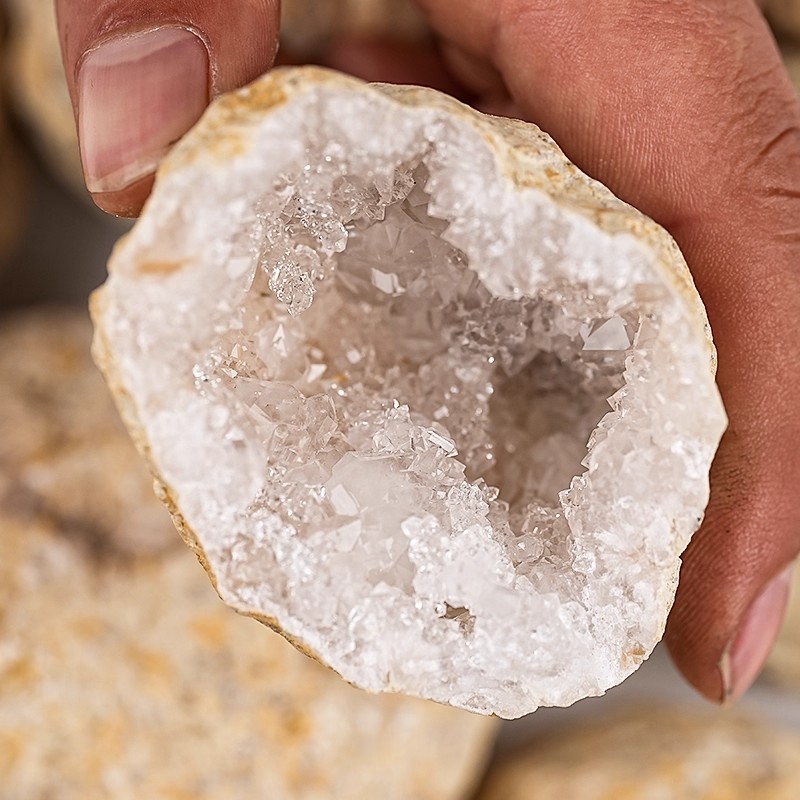 摩洛哥天然玛瑙晶洞 摆件白水晶原石聚宝盆招财转运 晶簇消磁造景