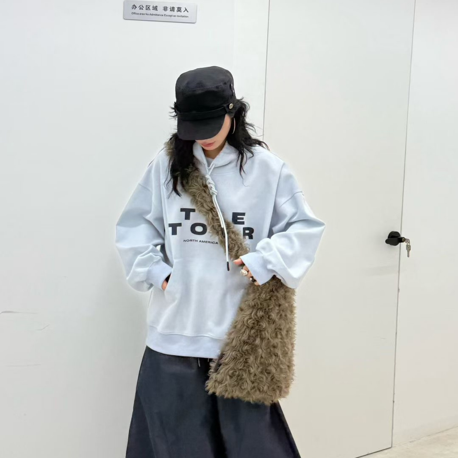 胖mm松弛风连帽抽绳大口袋卫衣女