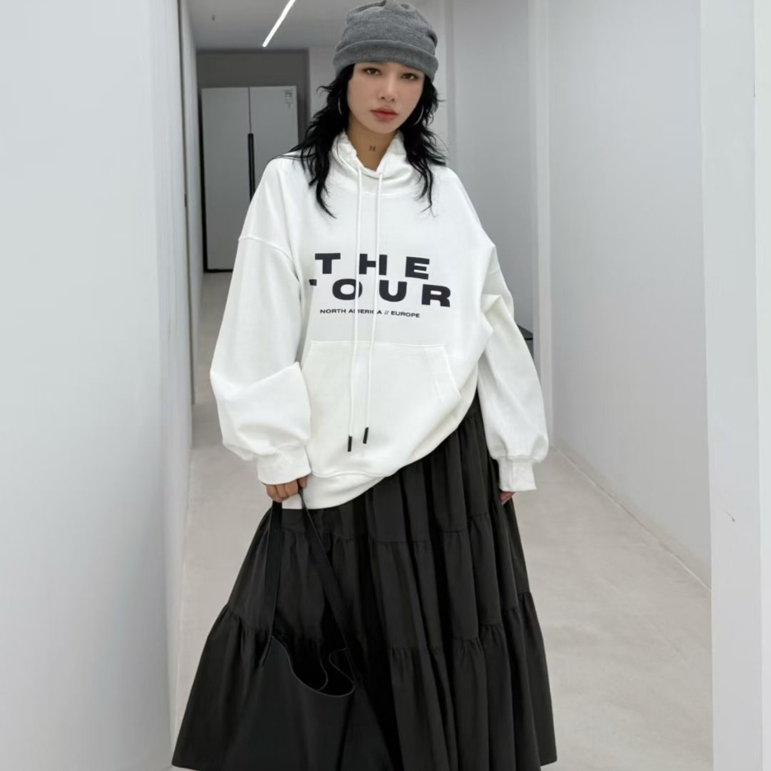 becabeau女装561852秋冬韩版宽松大码胖mm慵懒松弛风字母连帽卫衣