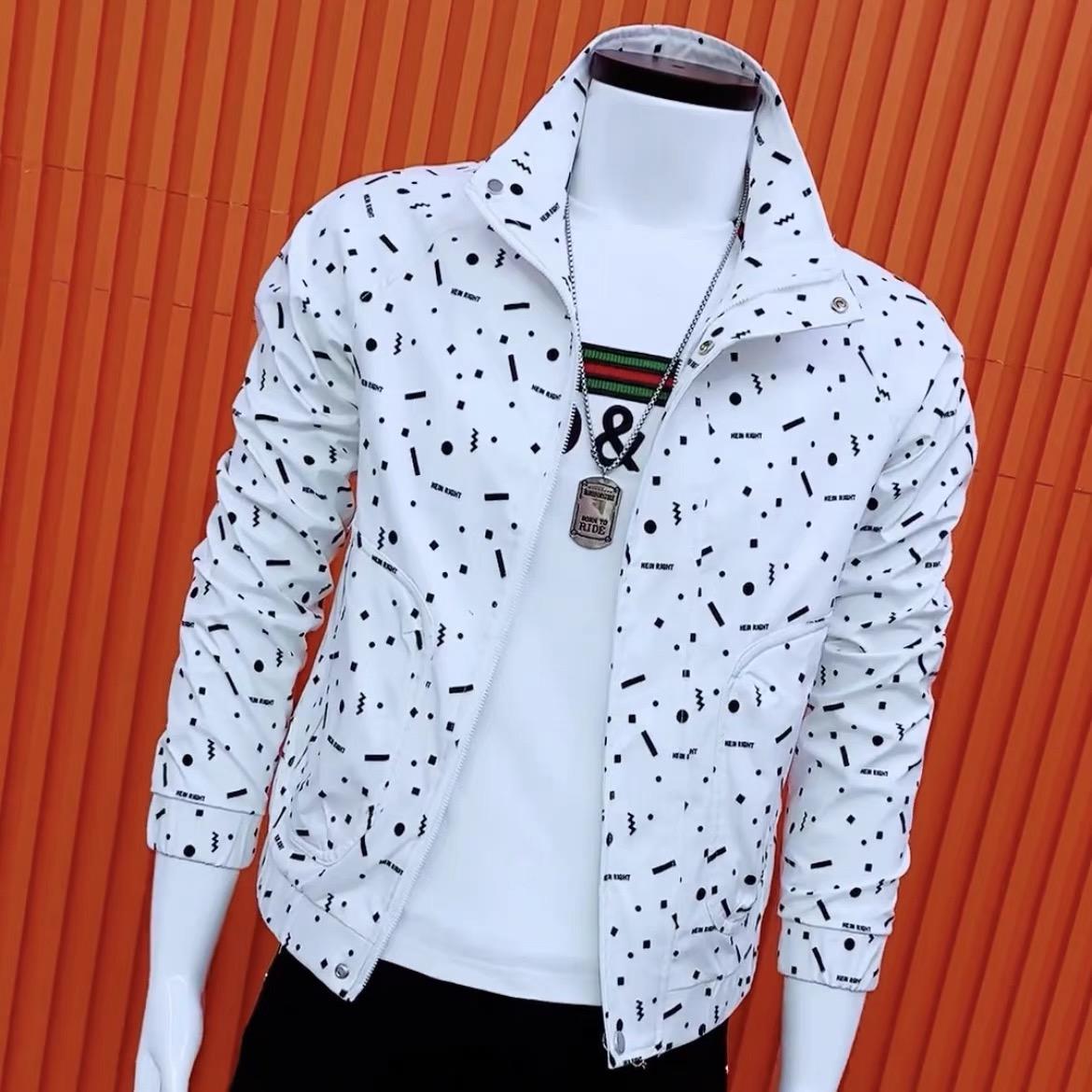 高级感潮牌帅气春秋季修身韩版百搭男士圆点夹克外套时尚青年上衣