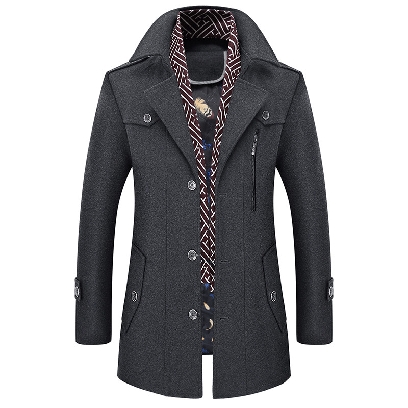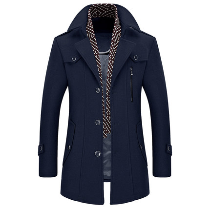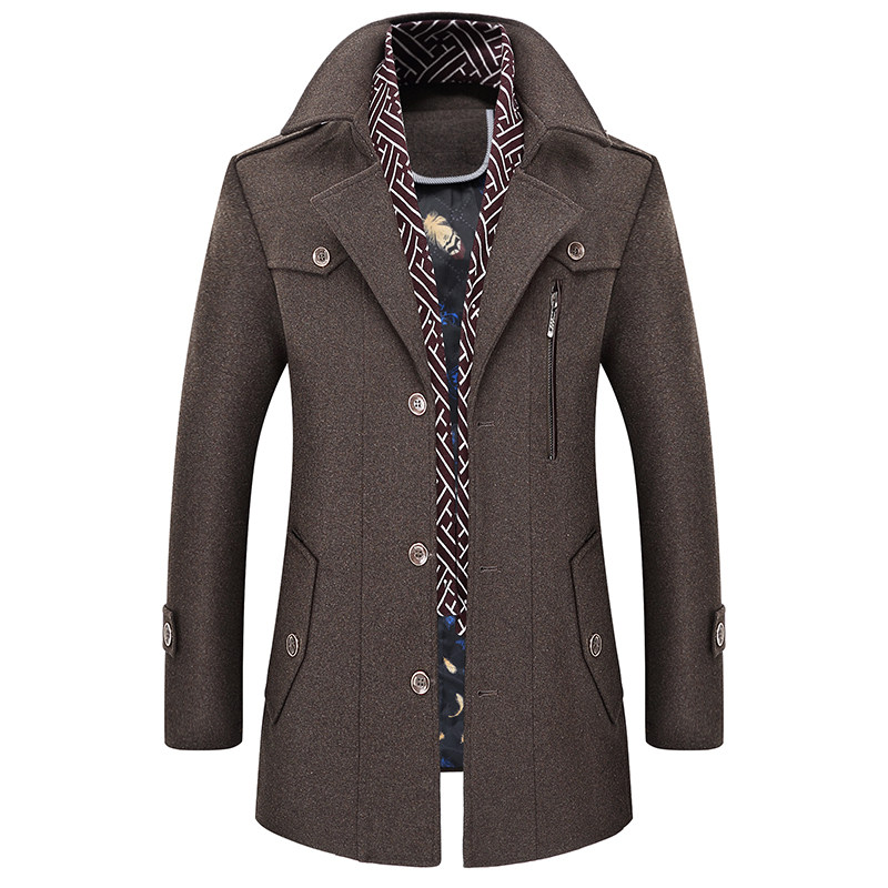 冬季羊毛呢大衣男装中长款加厚加棉修身款中青年呢子风衣休闲外套
