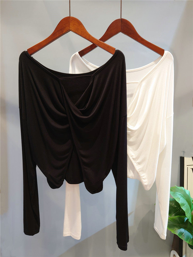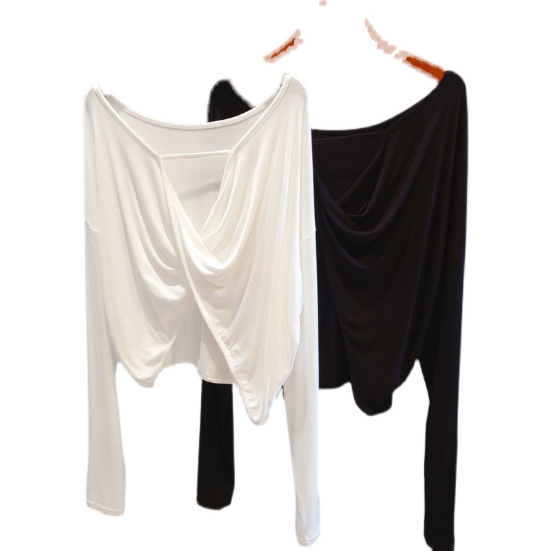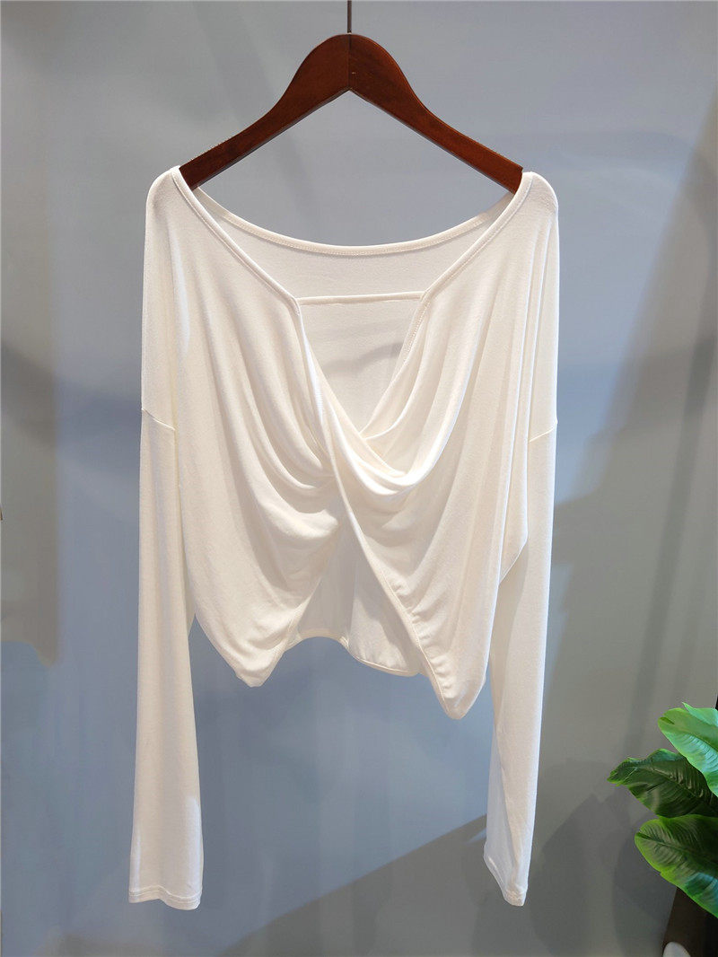 夏季性感大露背长袖防晒T恤女美背宽松罩衫短款上衣瑜伽舞蹈服潮