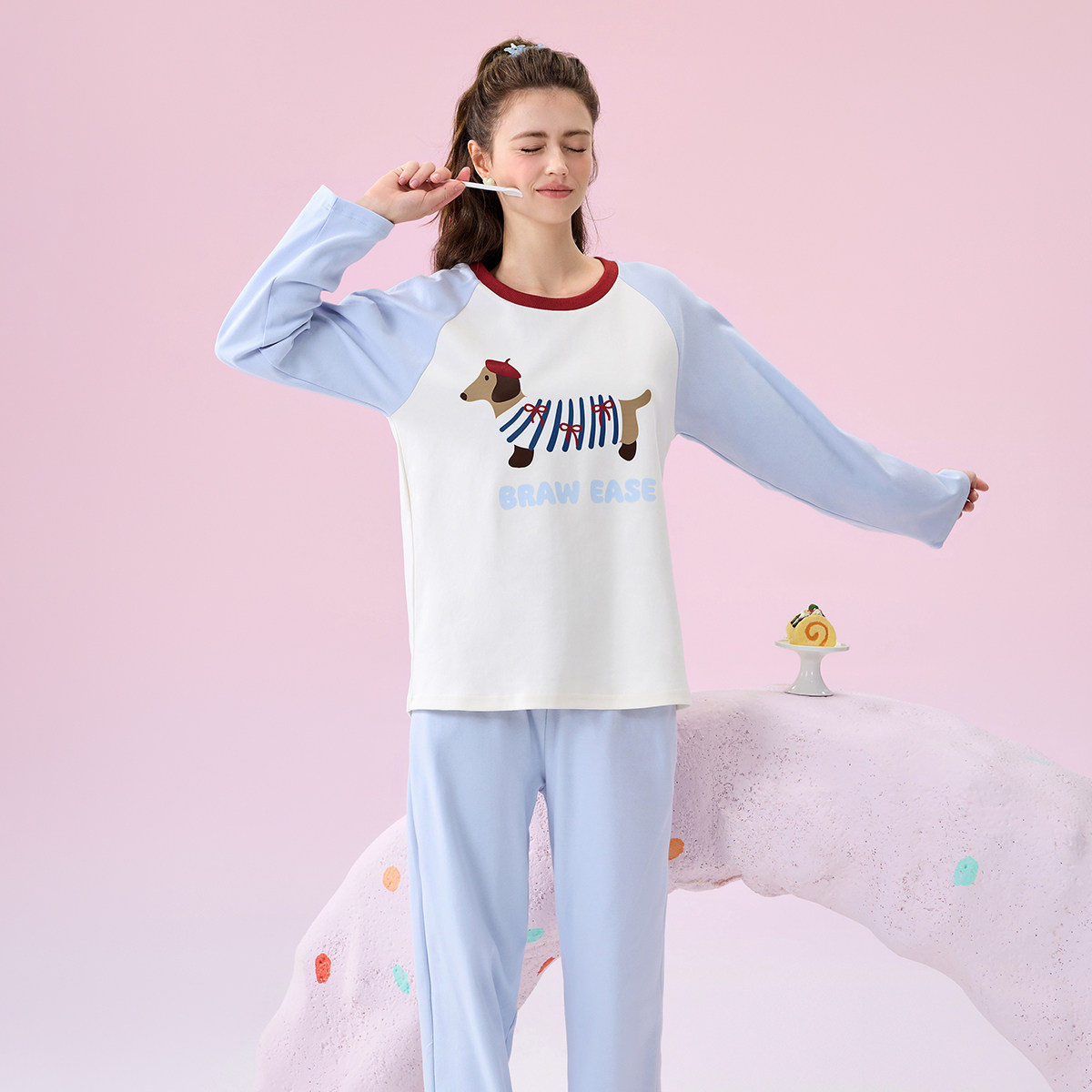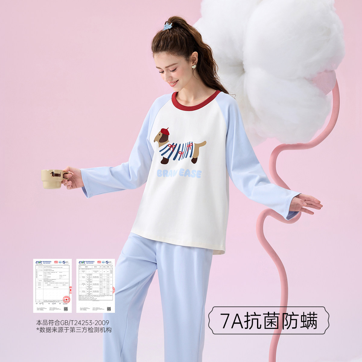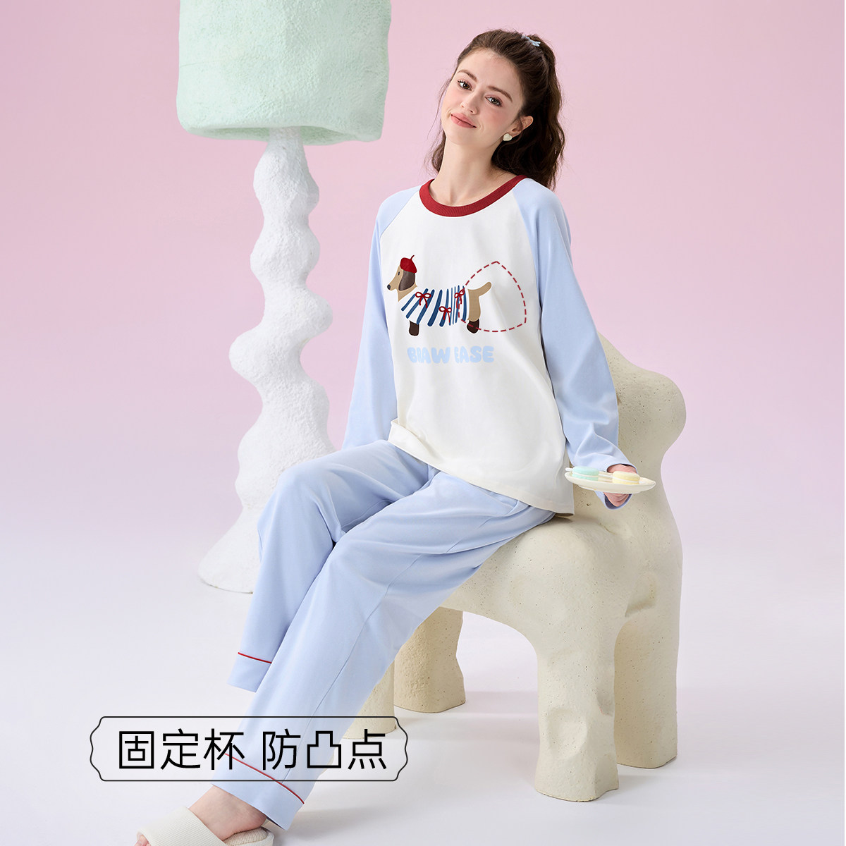 BE带胸垫腊肠狗抗菌纯棉睡衣女秋