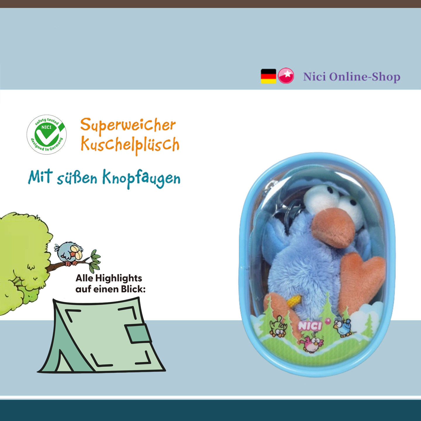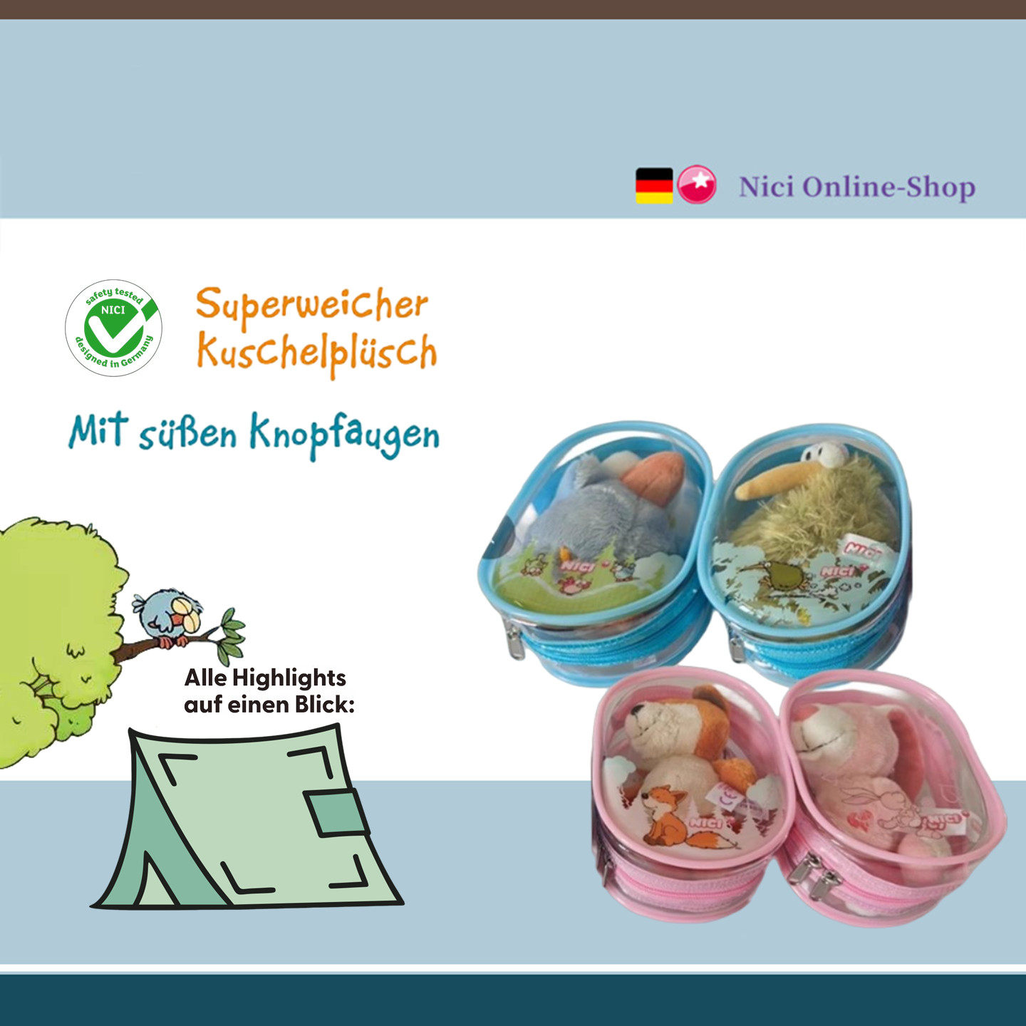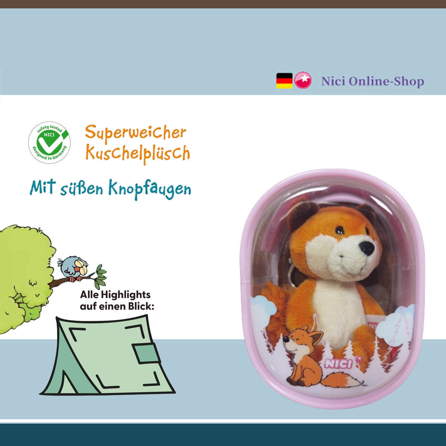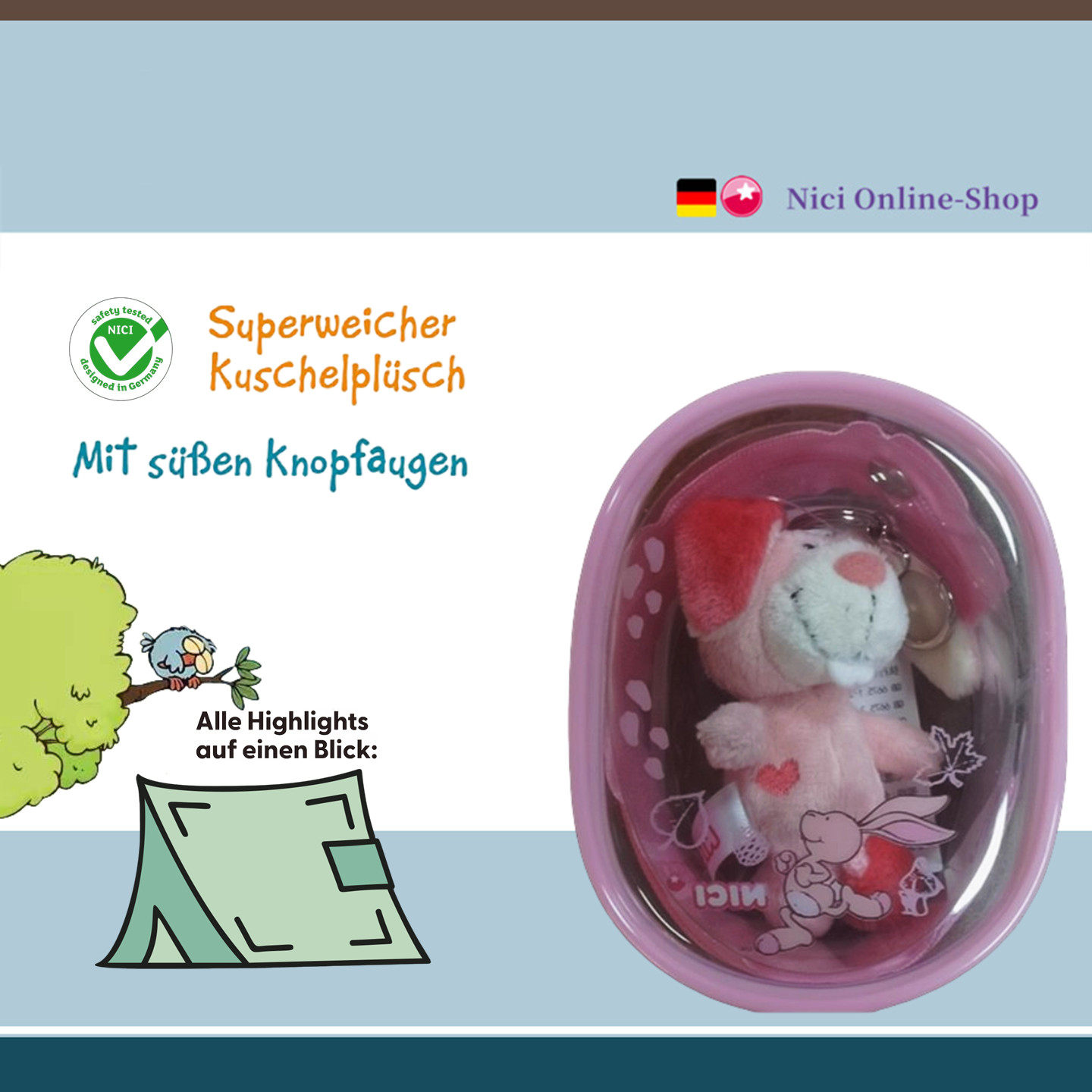 德国NICI专柜正品痛包钥匙扣知更鸟狐狸兔子几维鸟毛绒玩具公仔