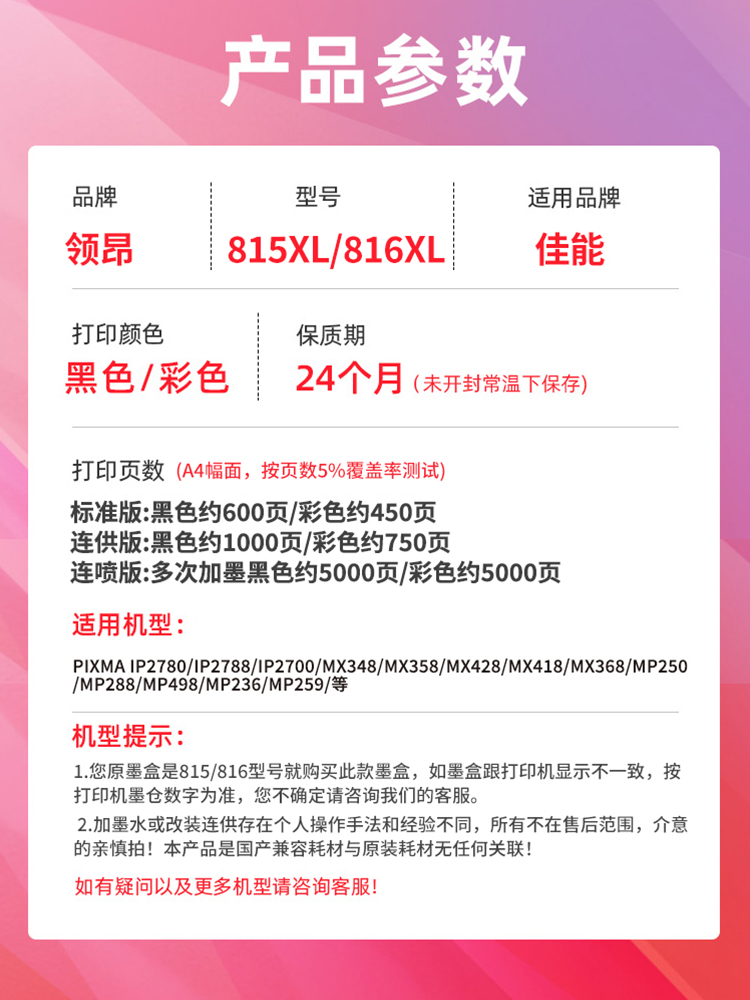 适用佳能PG815XL墨盒黑色CL816彩色canonIP2780 2788 MP288 236 259 498 MX428 418 348 358 368打印墨盒连供