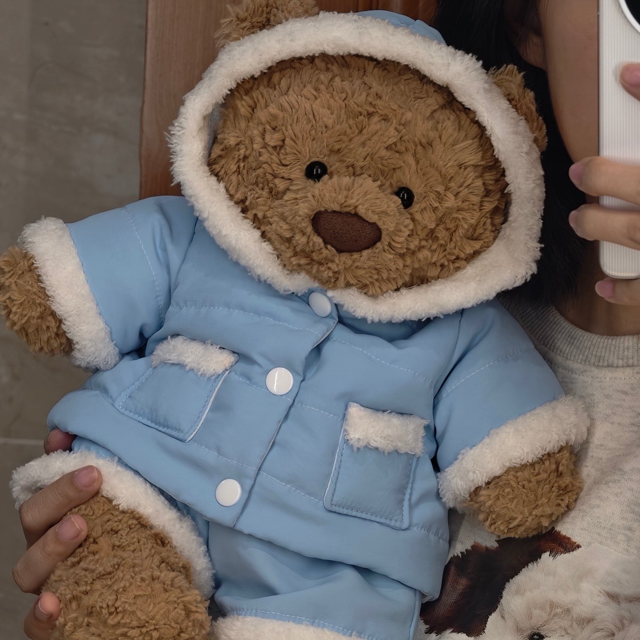 jellycat巴塞罗熊衣服巴猪连帽毛边棉服新年娃衣粉色手作玩偶衣服